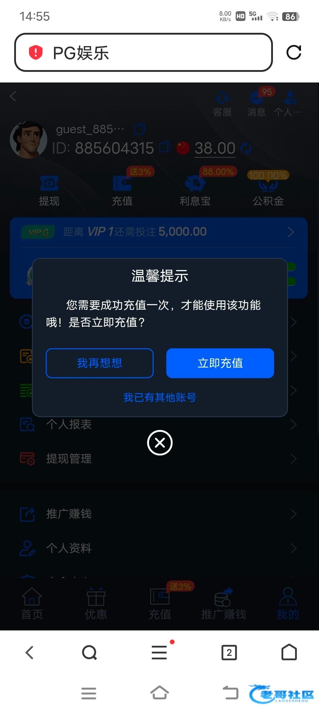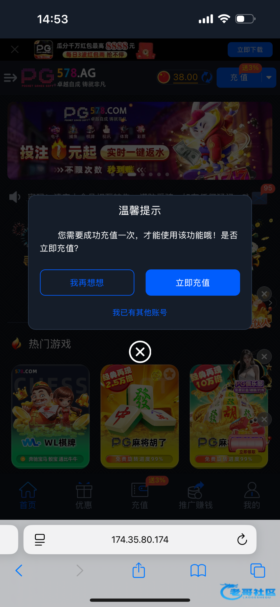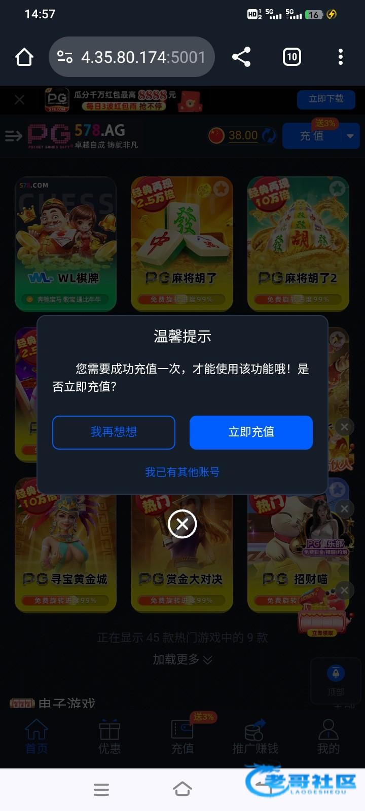 骗充值的,我都没账号,打开网站就登陆成功了有38