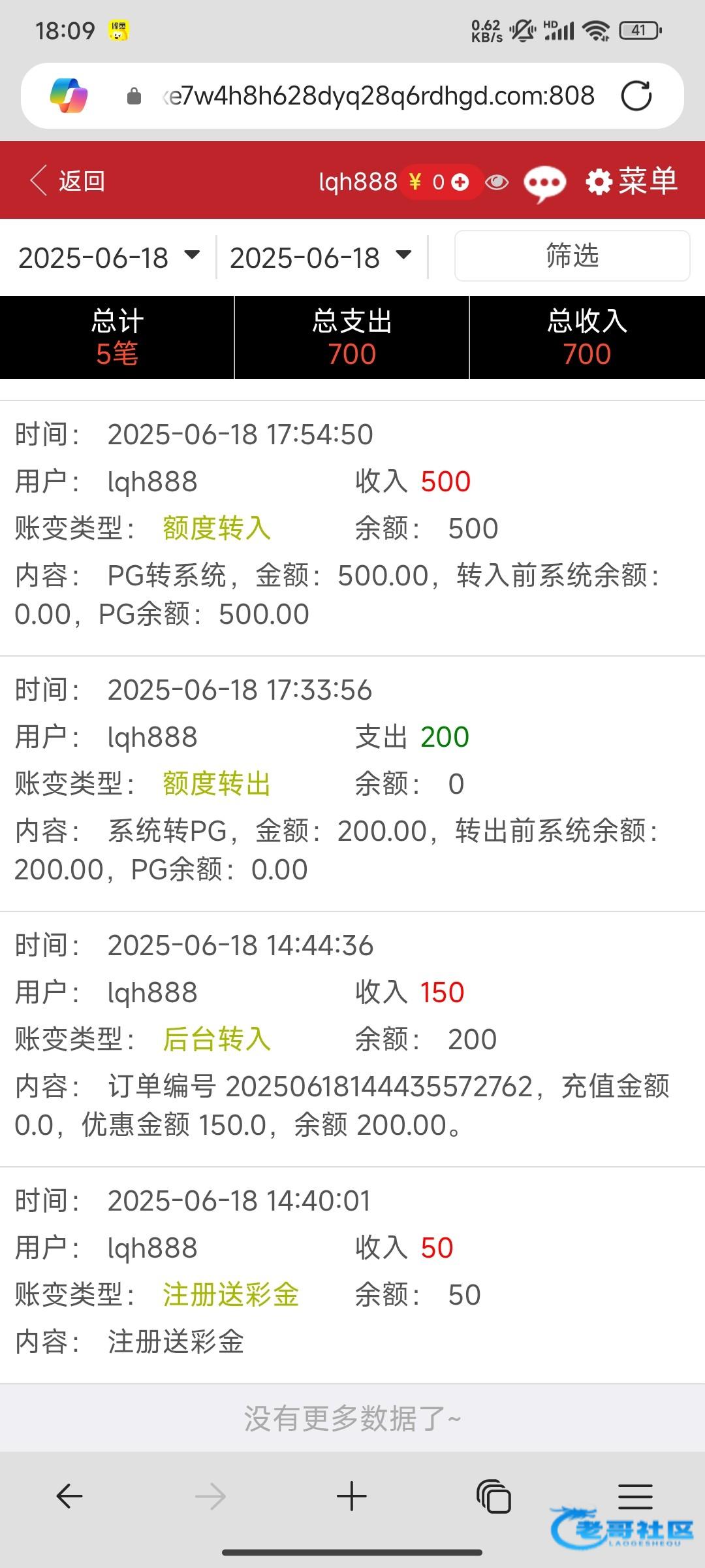 老哥把这个帖子删了。充值了后彩金和盈利没有了。黑台