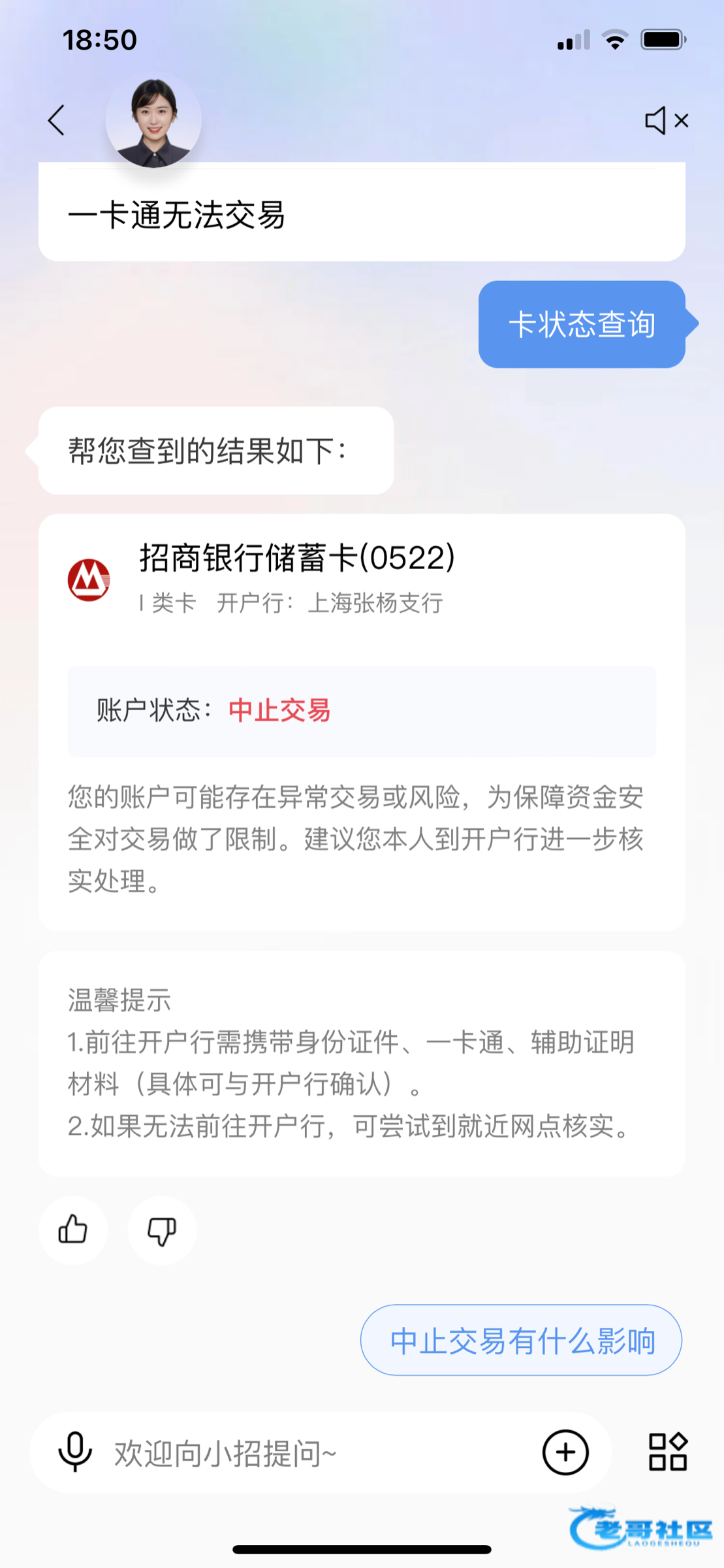 招商卡刚开始封了六个月到期又续了六个月,现在只有银行中止交易了,去银行给不给解啊