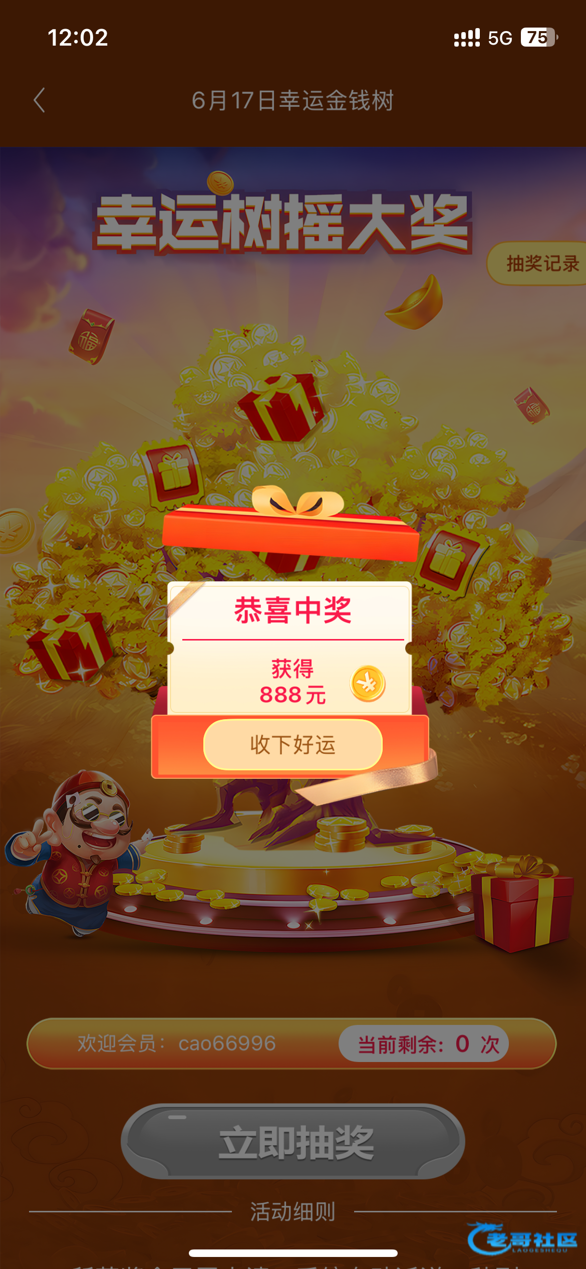 老哥们227幸运摇钱树今天出来个888直接蒙了