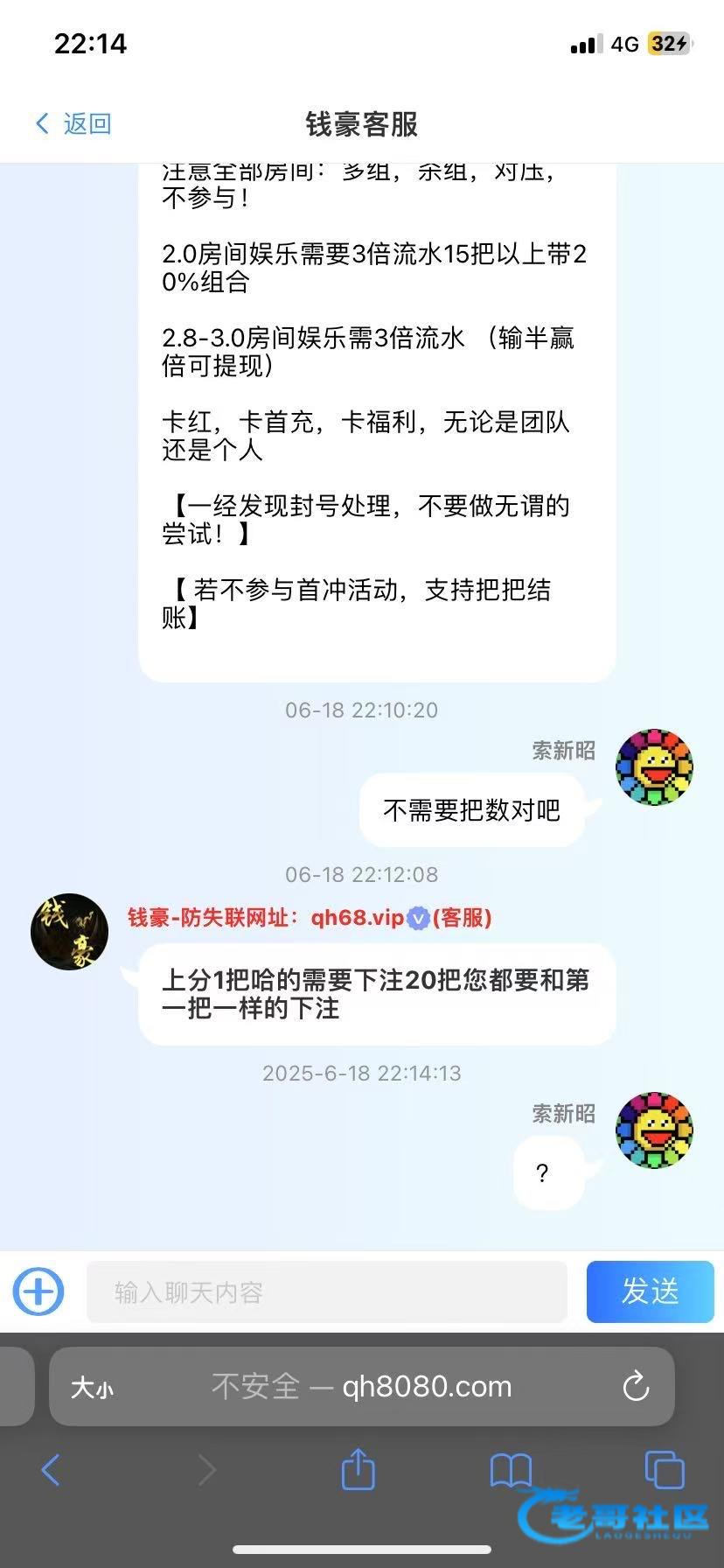 钱豪死妈黑台邀请回归100+58说我梭哈罚20把158下注,完事打完了下分直接冻结,还在玩的老哥避雷死妈黑台几百块也黑qh68.vip