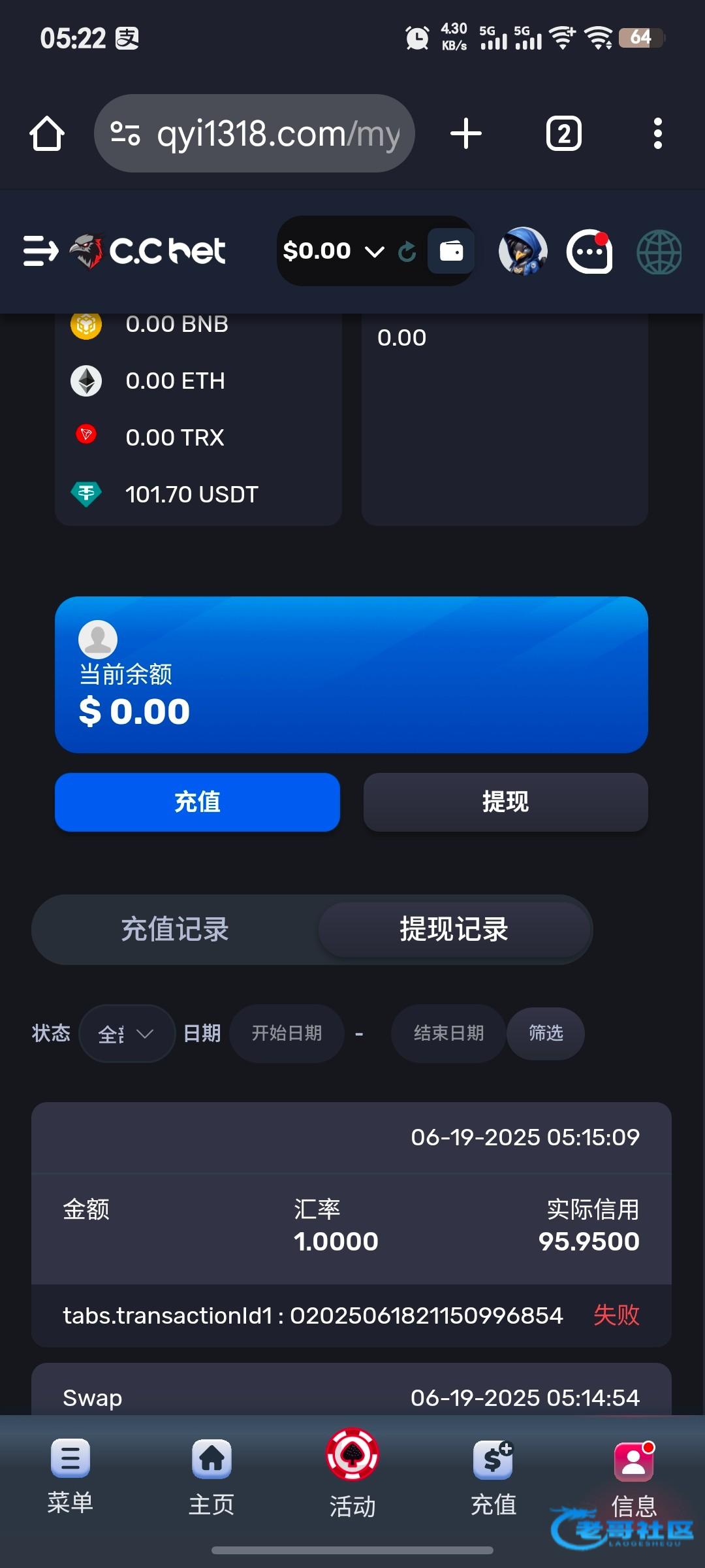 赌狗就是要搏一搏,明明知道是黑的,还充值了10U进去,现在在提了,等我消息。