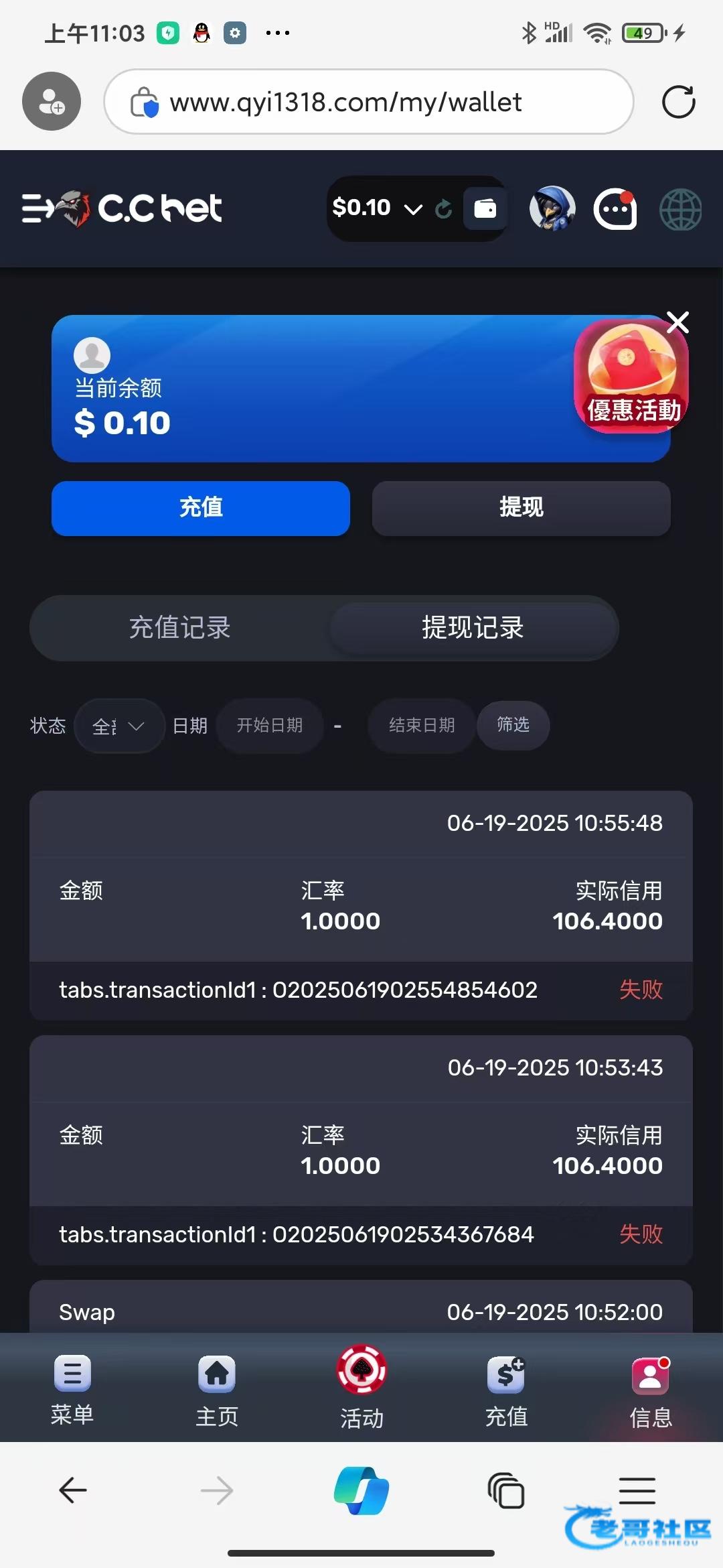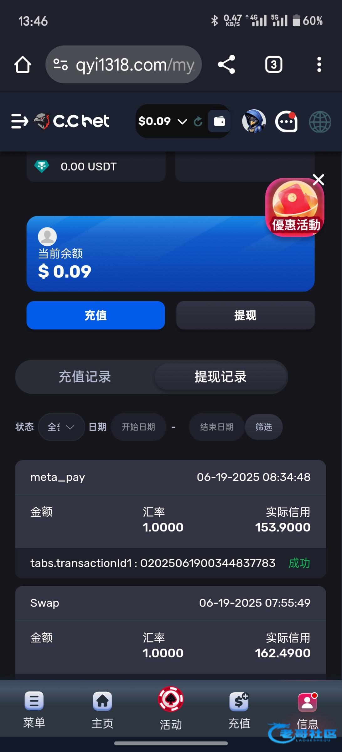 兄弟们冲,秒送10打出来以后冲10u进去,然后kyc认证,我提了6个小时终于到账了。助力老哥有效贴。