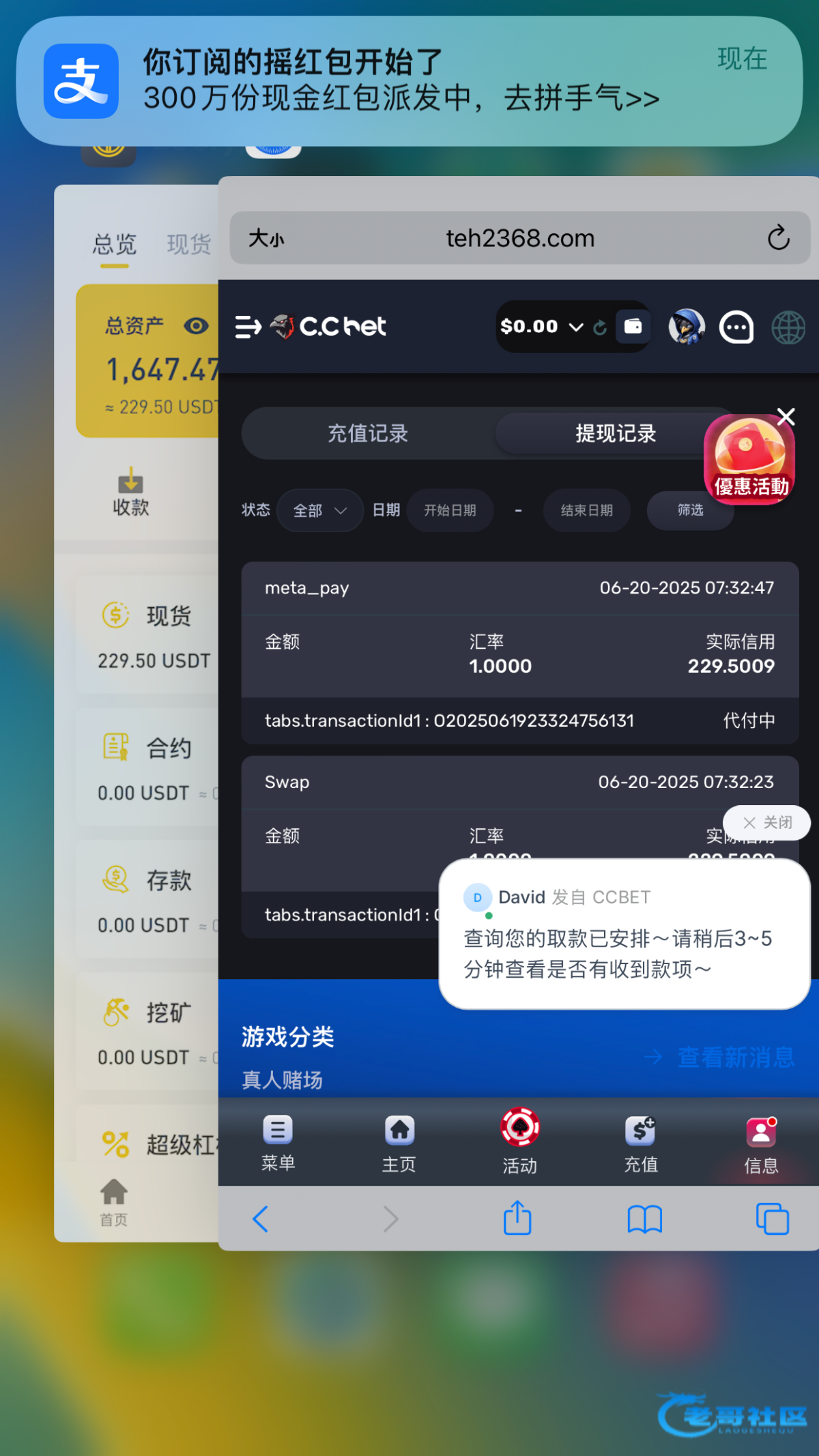 这个平台格局真的大,朋友打上2000u以为不会到账结果提了半天就到了