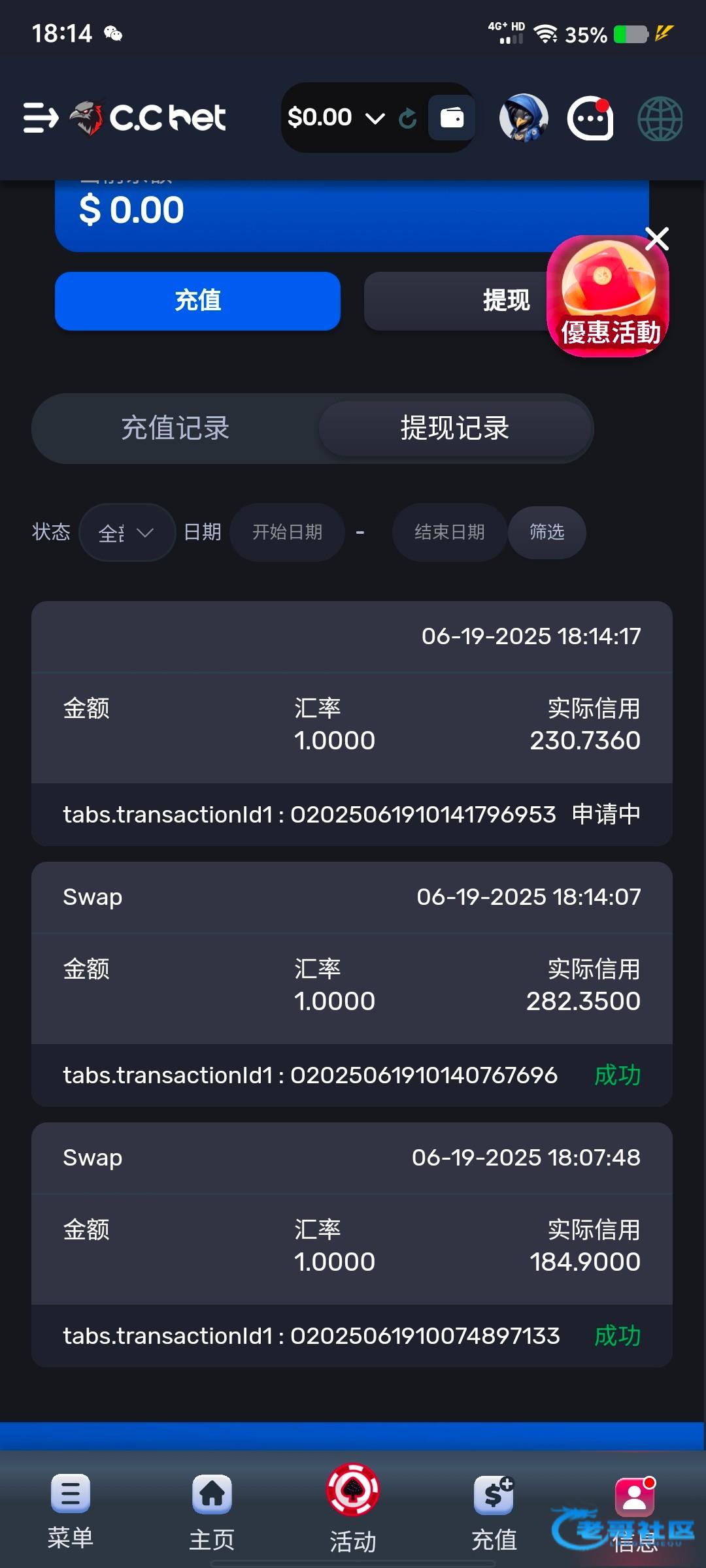 真的能到……我群里的提出来了,我因为kyc不了100多u瞎玩玩没了