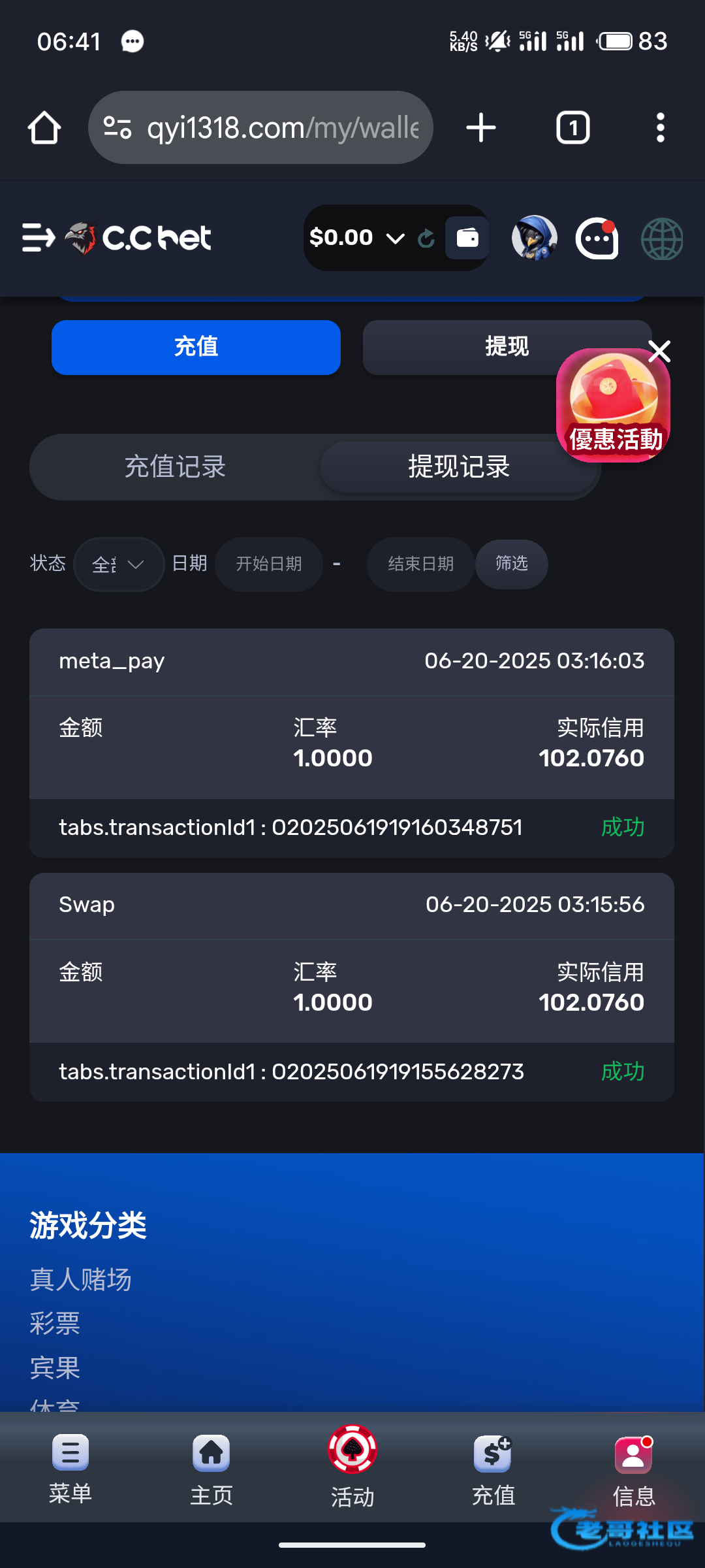 昨天冲了10u 一天收不到验证码以为跑路了 凌晨恢复了验证码直接出了 150u安全下车