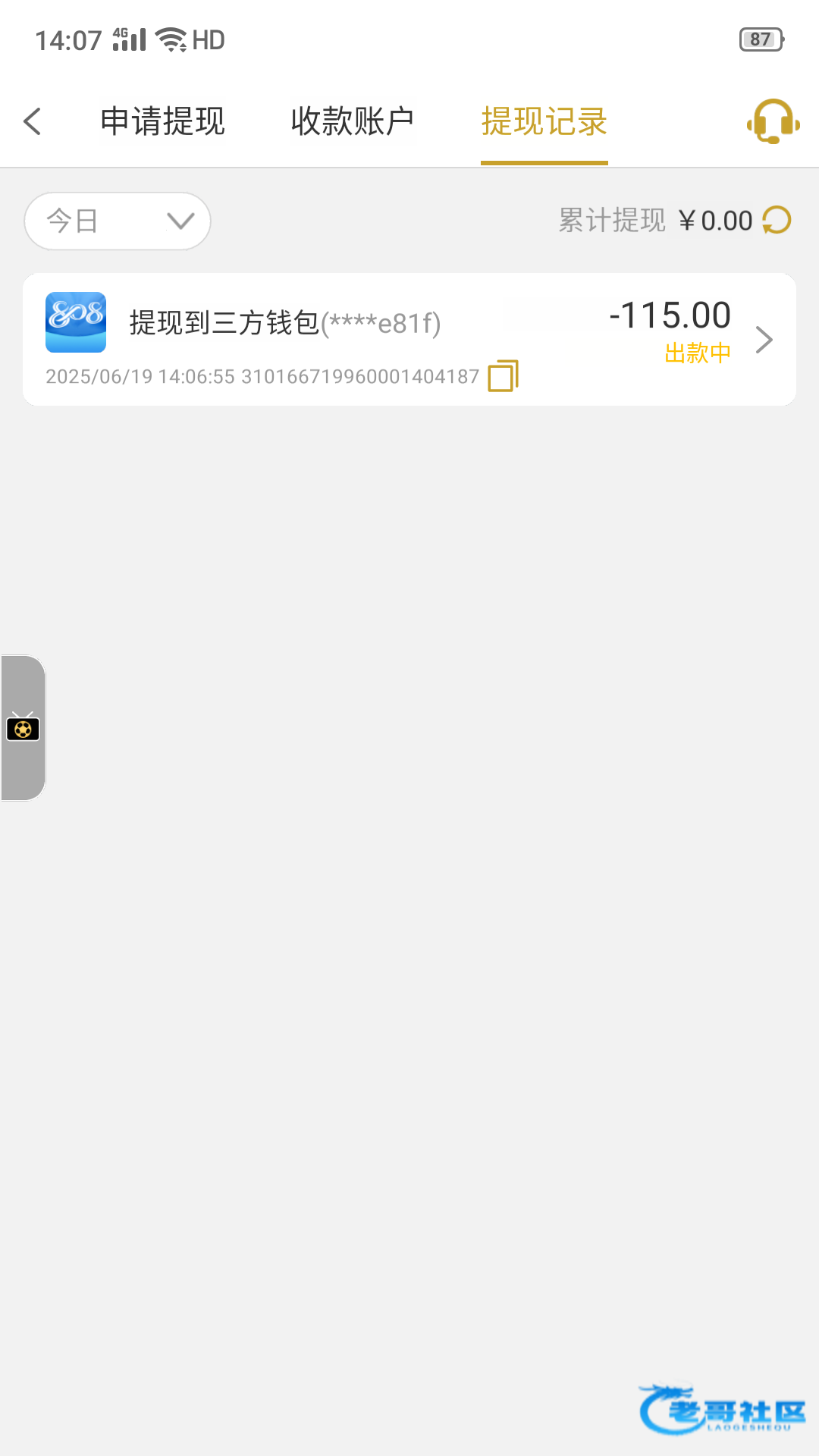 出款中不知道能不能到