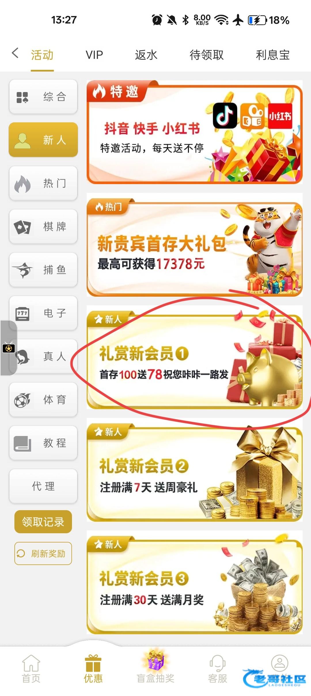 感谢老哥提供的信息,我注册没送,我看到优惠那里有新人100+78活动,身上就100多点,决定赌一把,还真打出来了!