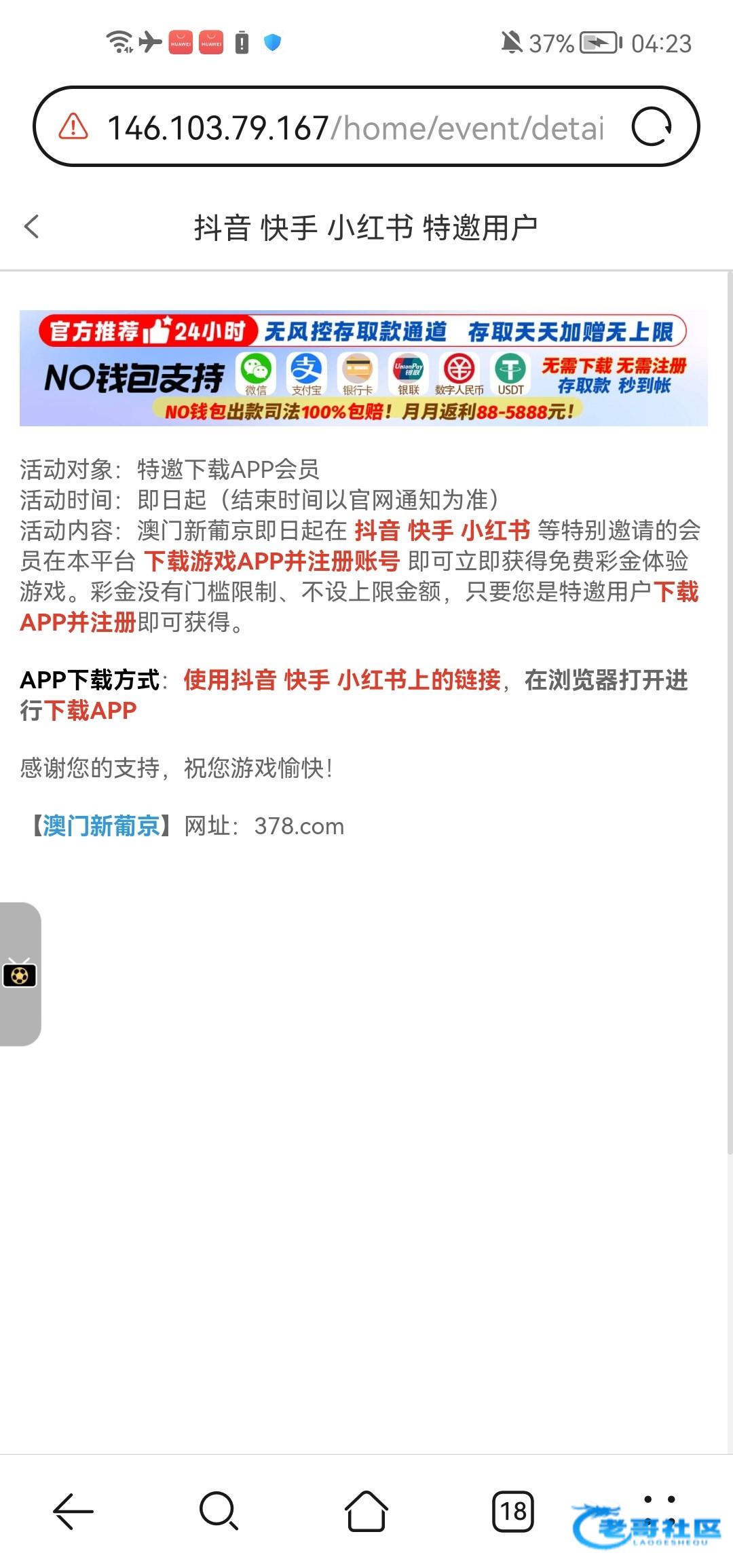 422.me注册好了后,图片里的下载app参与抢红包,提示不符合要求 app都不让下载,抱着等试一试心理,联系客服要了app下载地址,安装登录,余额还是0,卸载,还绑定了卡 浪费时间