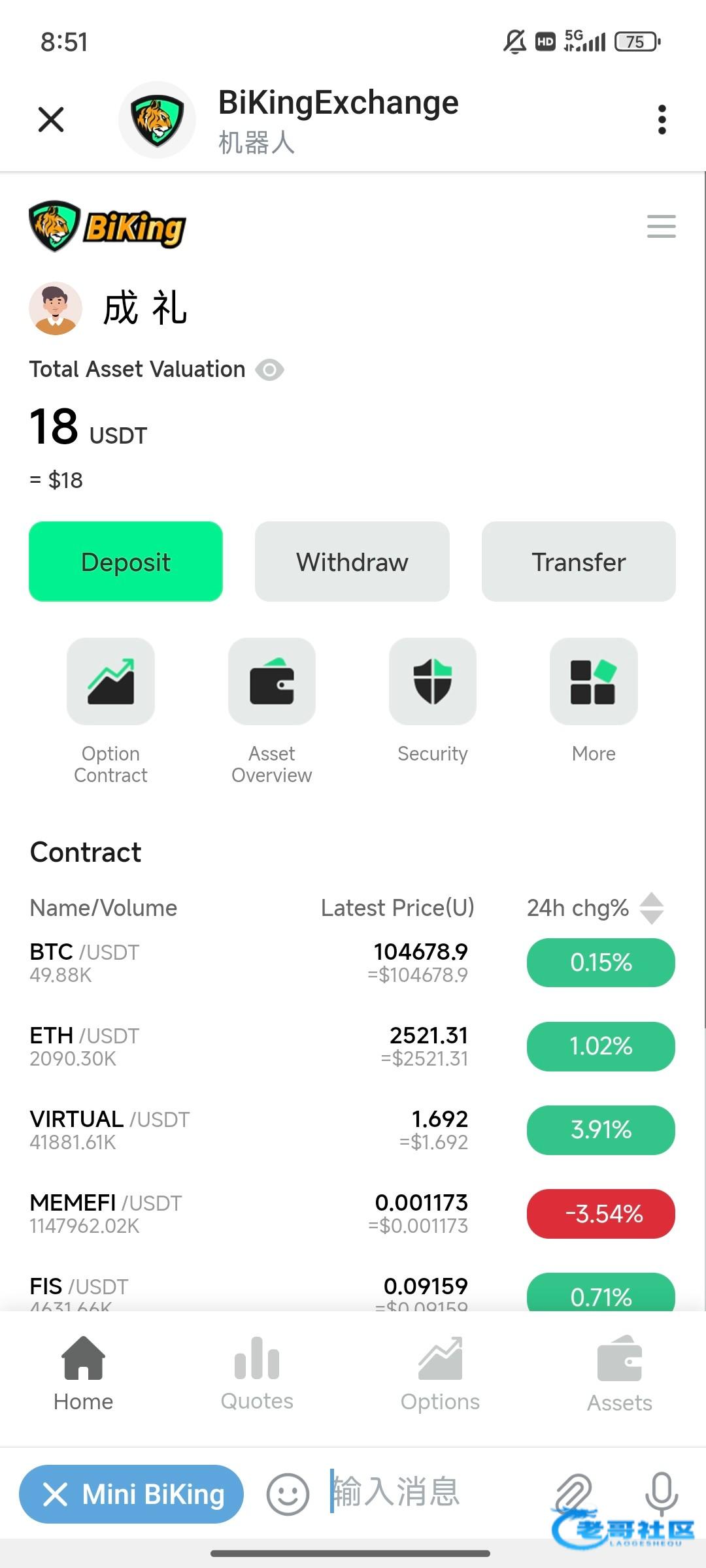 飞机上送18u 注册10分钟左右到 玩期权到188u提 有人提现到账了 飞机打开https://t.me/BiKingExchange_bot/bikingex?startapp=Cd90w2b9khq77s5522q