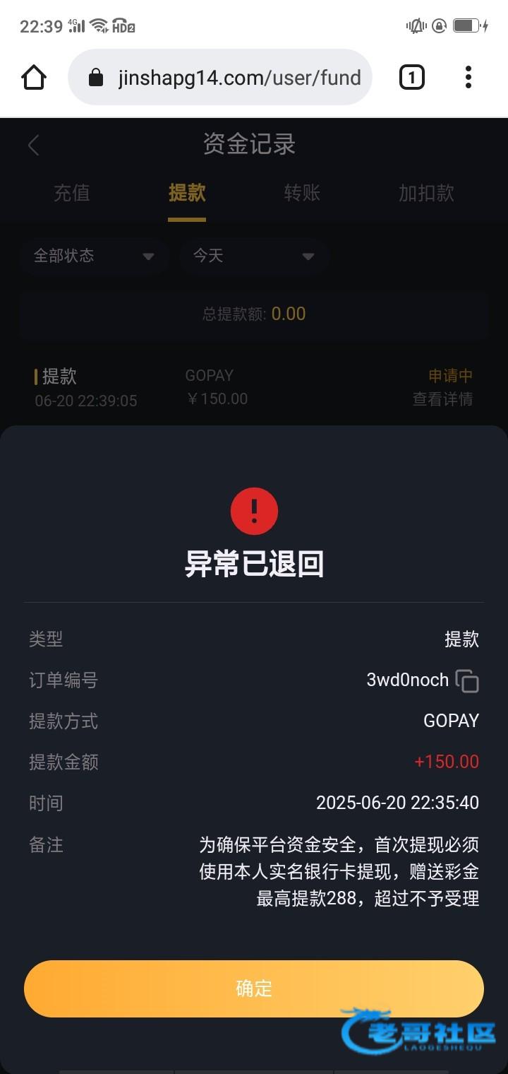 老哥被黑了 玩的pg 打到200 输了50题150 然后提款一直退回 然后问客服直接冻结