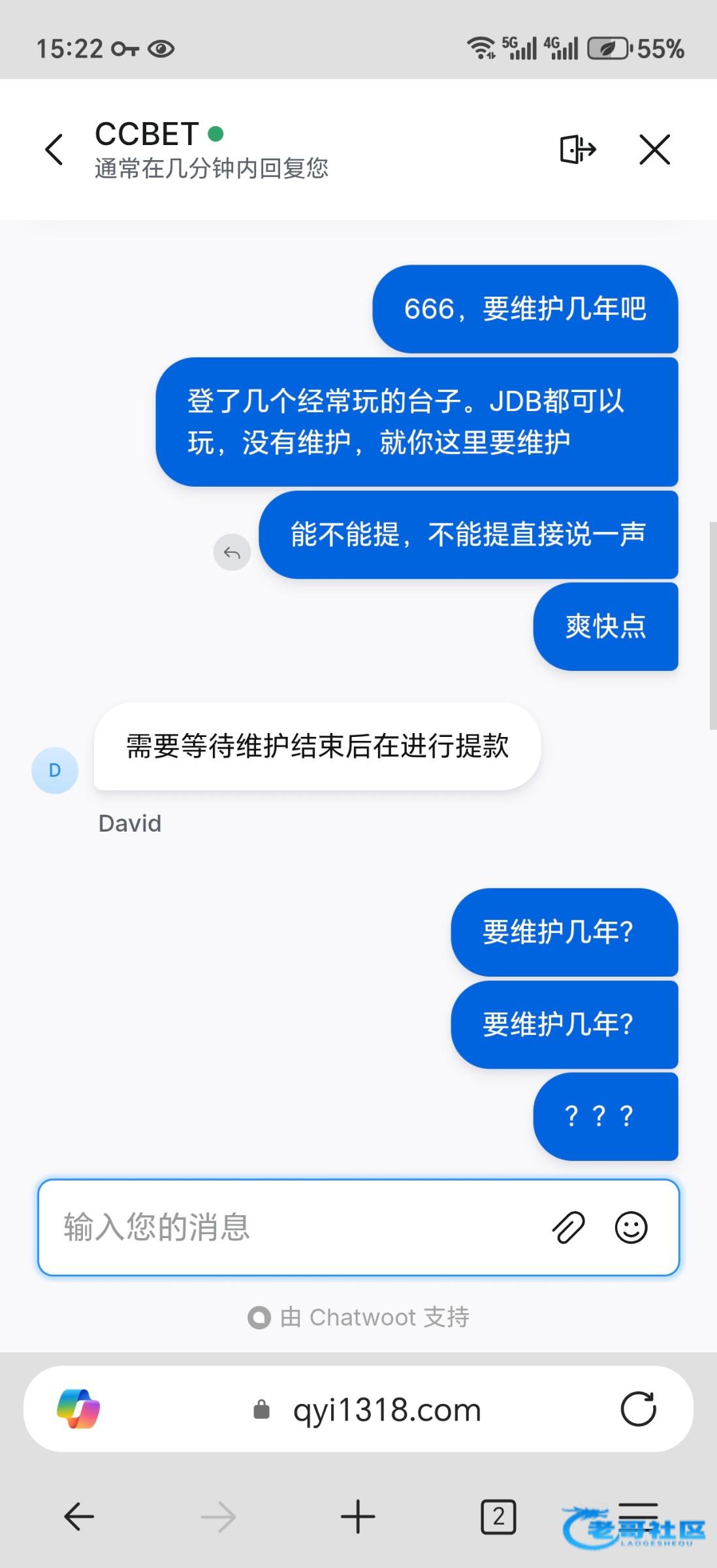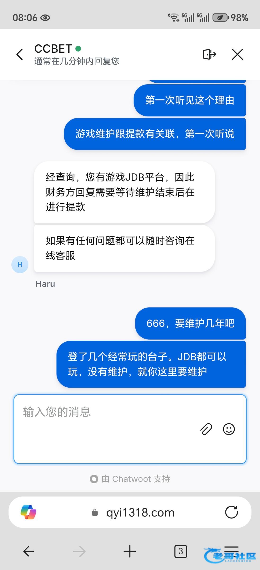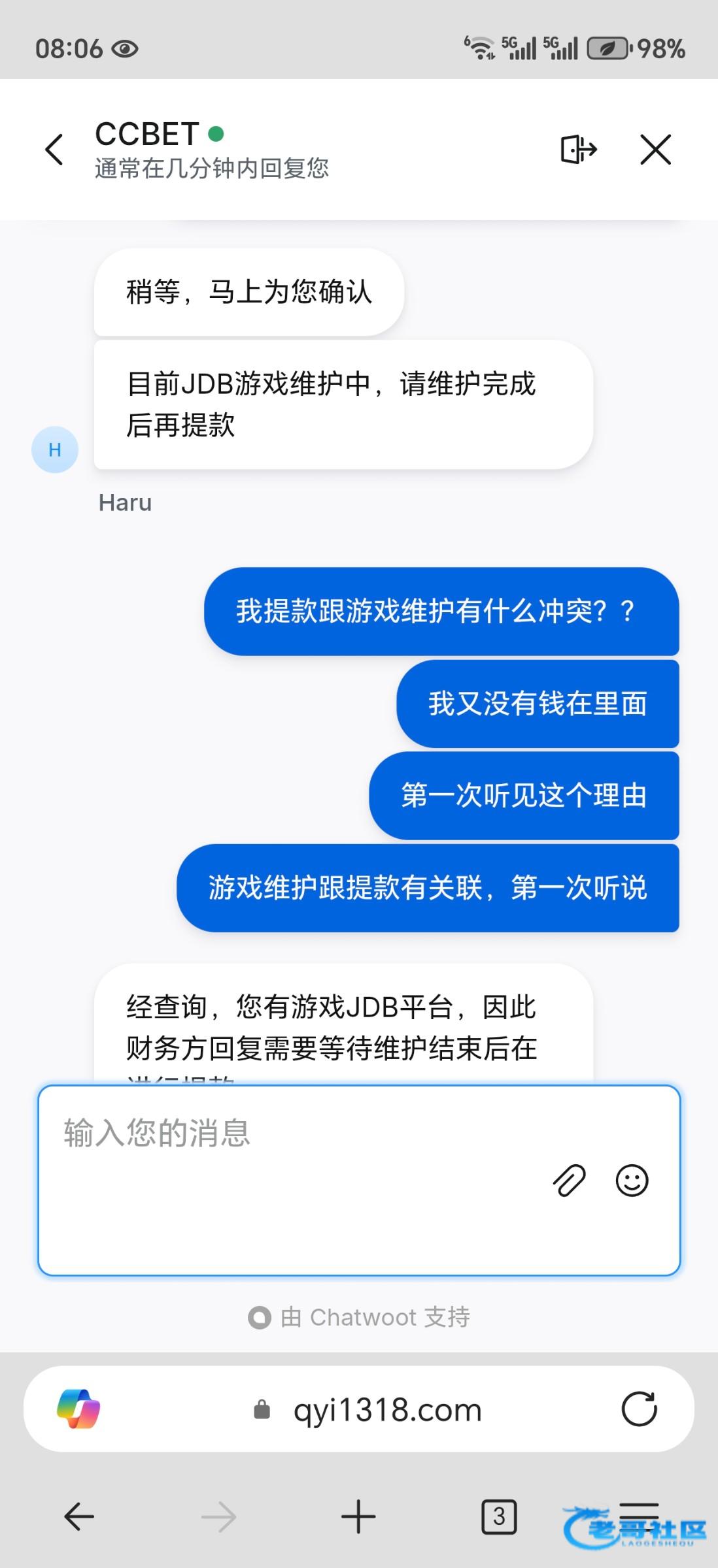 baolai00 ▶ 花间一壶酒5592 到不了啊,问客服就只会说,jdb游戏维护完成才能出款,问多久维护完成,就说不知道 7月前
