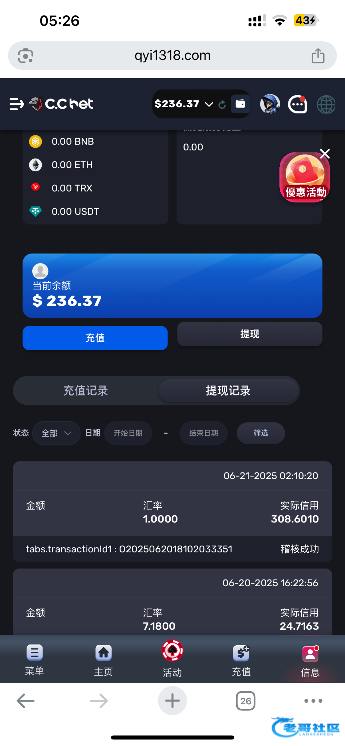 baolai00 ▶ 康熙 你看提款哪里显示什么,显示稽核成功就会出,我那天也是,半夜给我出了 7月前