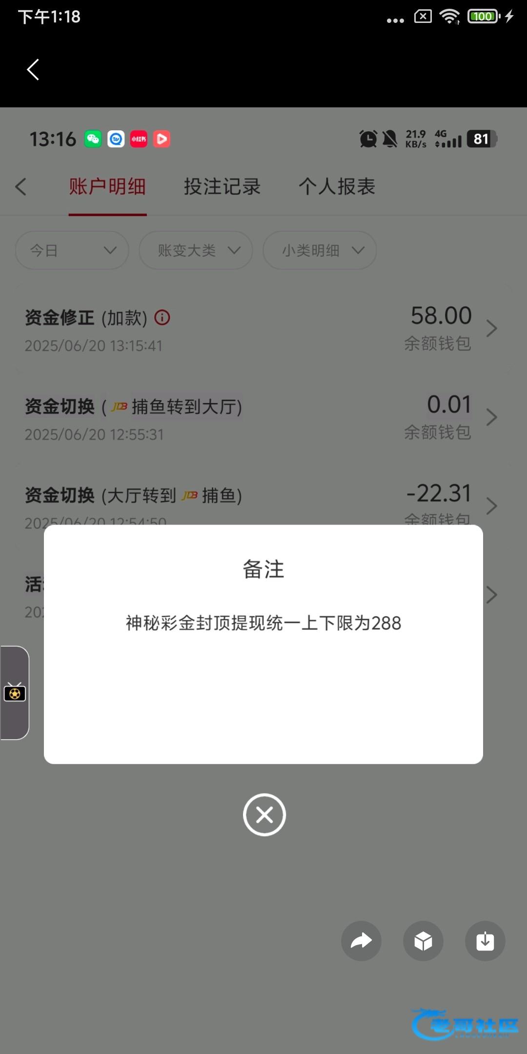 充了8000多提了14,000多,也送了58下了288