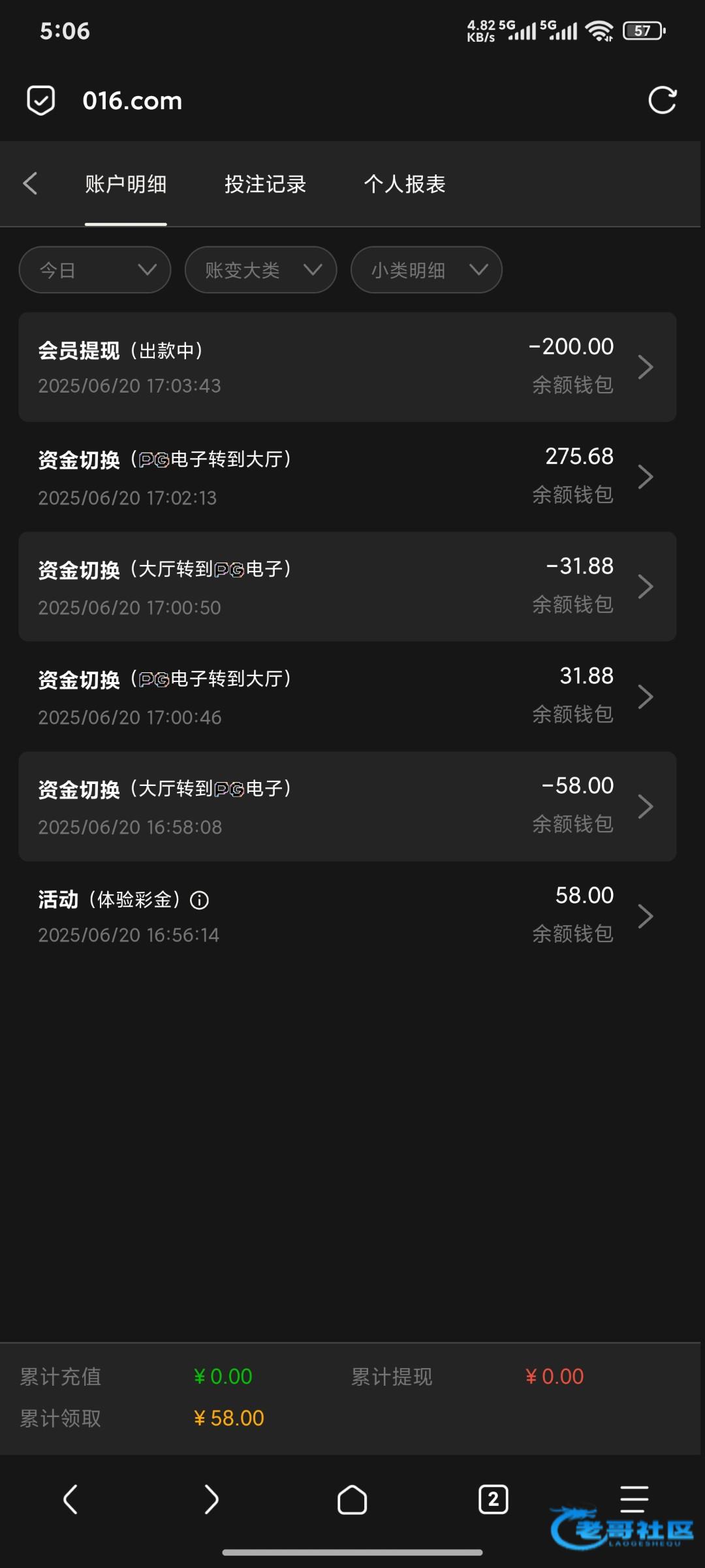 刚刚来了个电话我给挂了,马上又打来一个,我接上刚准备骂,对面是个声音特别好听的妹子,说送我58让我上号领,然后他告诉我链接我就上去了,看了下资料16号注册的,一分钱没充,今天就打过来了,打的pg招财猫,0.8打的,特别大,上去就是免费,不到5分钟打到200流水不够又回去玩了5分钟刷够58流水总共用了十分钟左右直接提了,直接到账