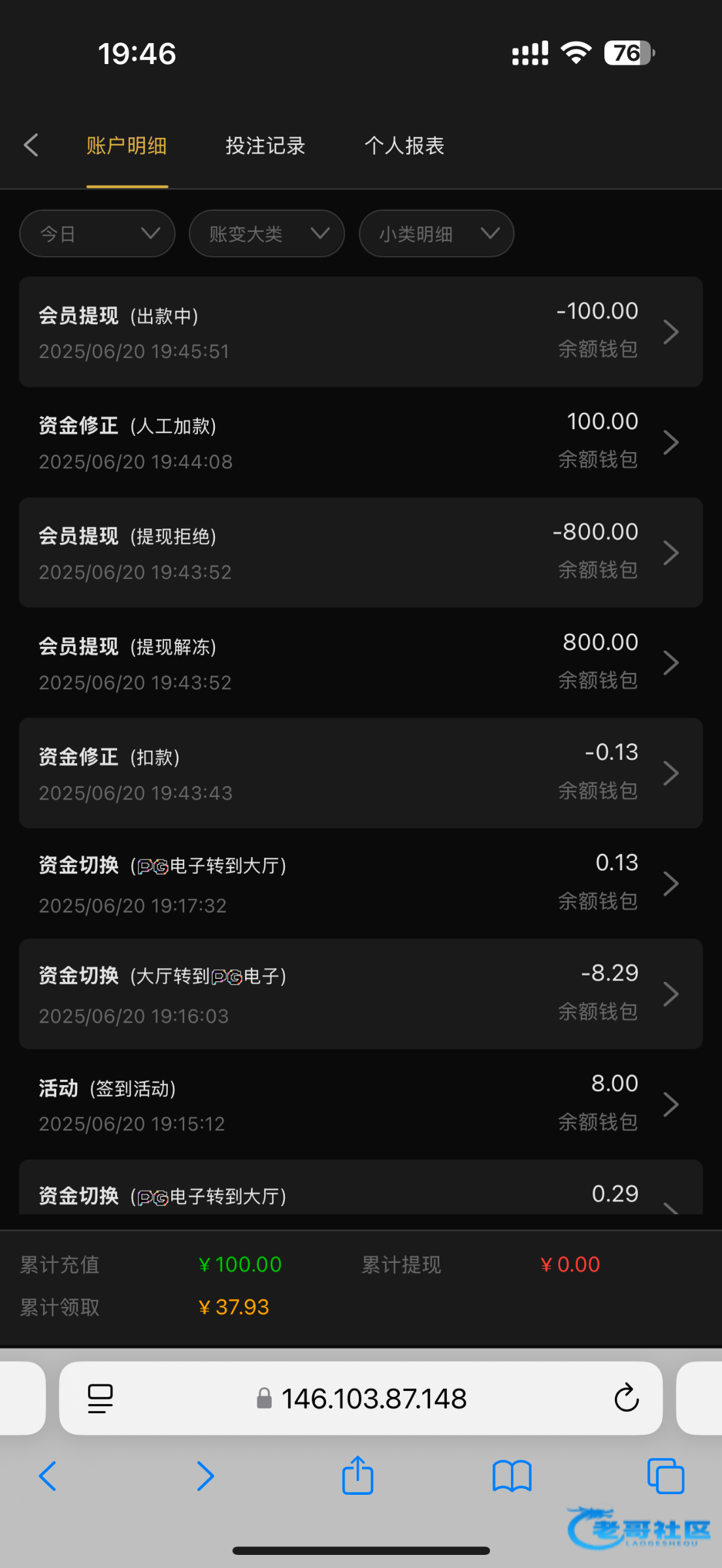 我两个号出都是500 也就是捕鱼刷到流水就给提了 而且还是多ip 解除第一个账号钱包 绑定到第二个账号继续提。估计你这是运气太背了