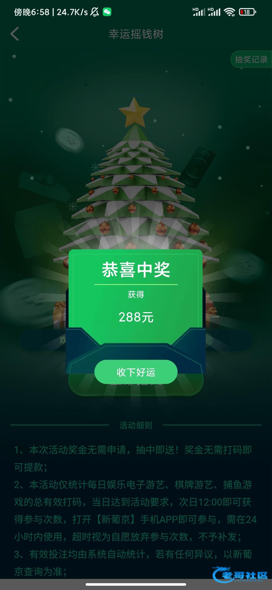 我直接惊呆了,第一次摇钱树这么大,本人昨天流水1000多,等级lv3