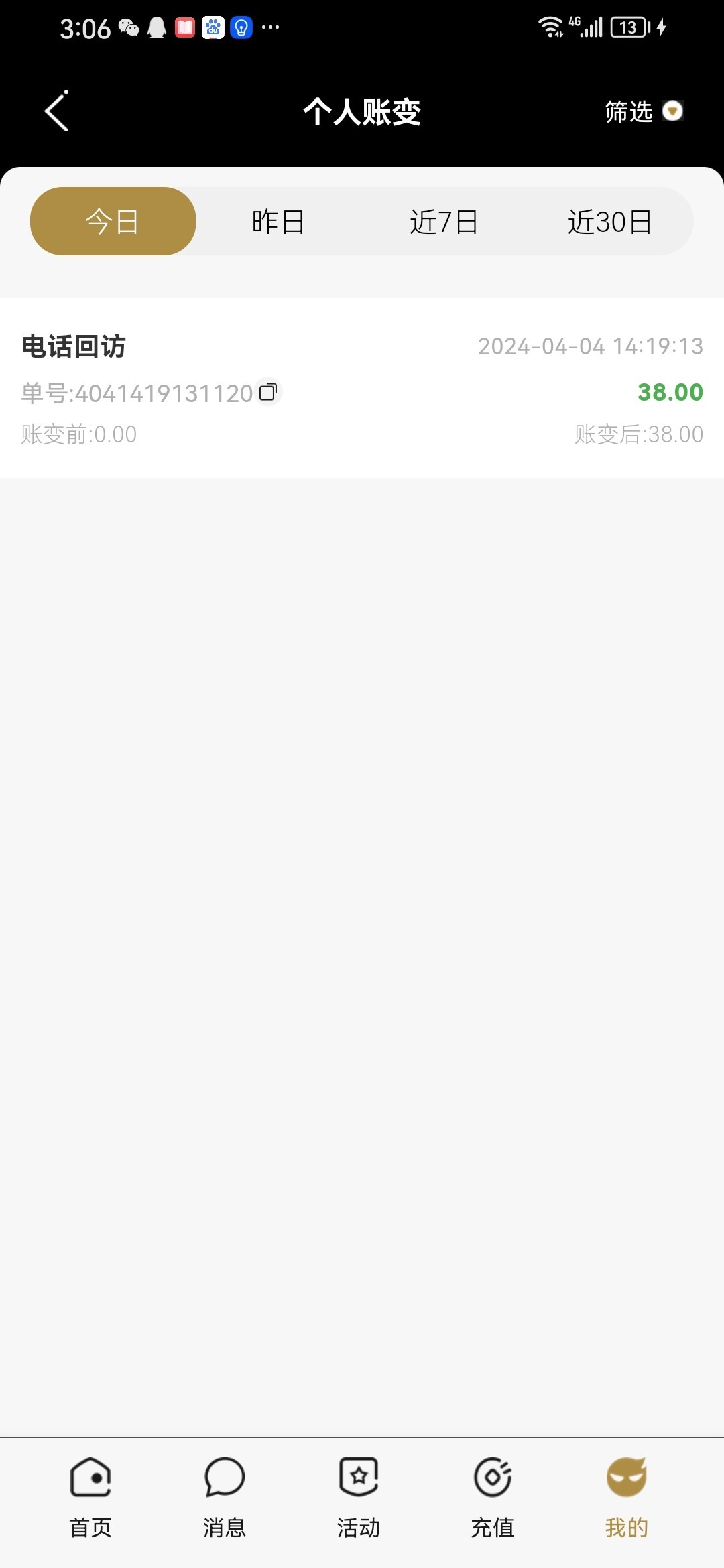 今天狗庄给我打电话了,给了38