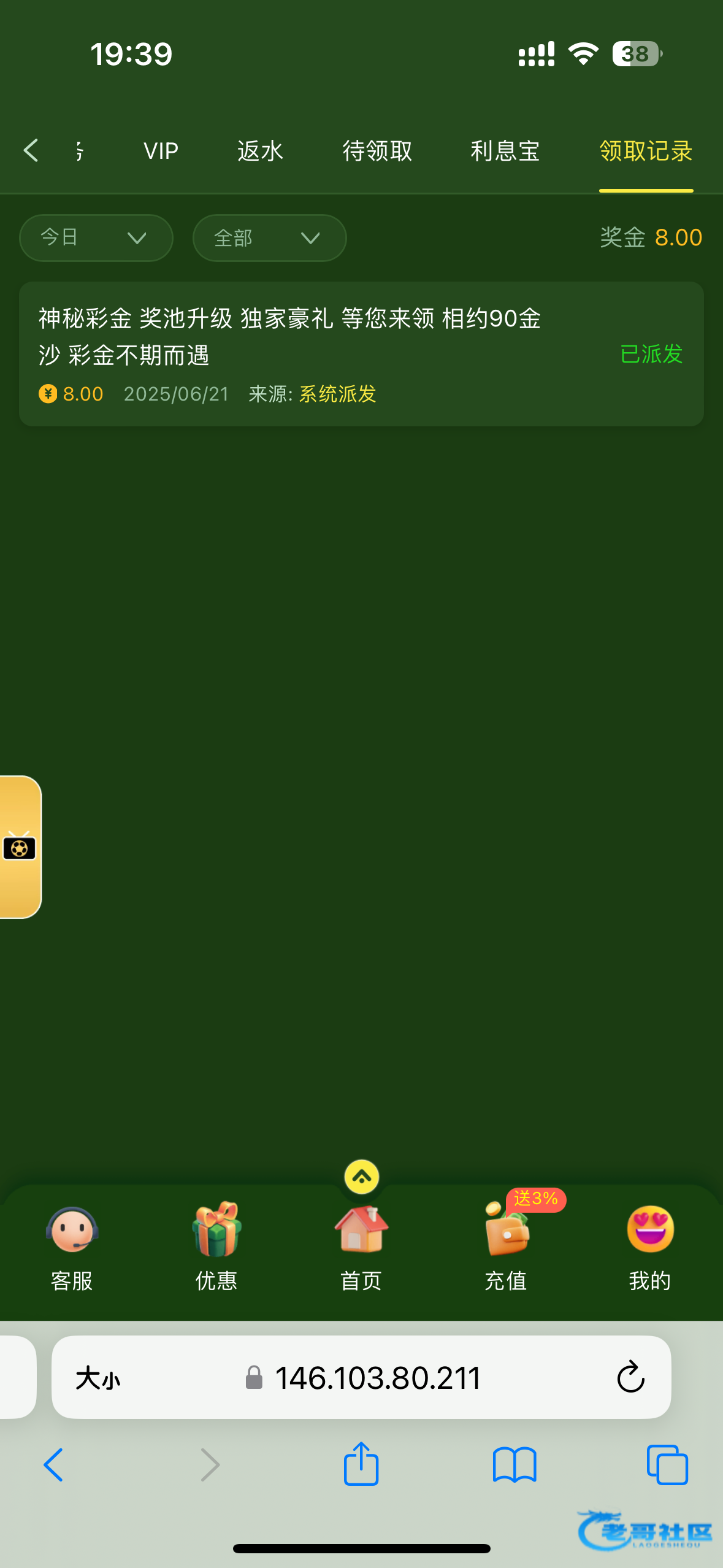 要冲同等的千万别冲 我4月份输了3000就没玩了昨天领58出300冲同等不给出