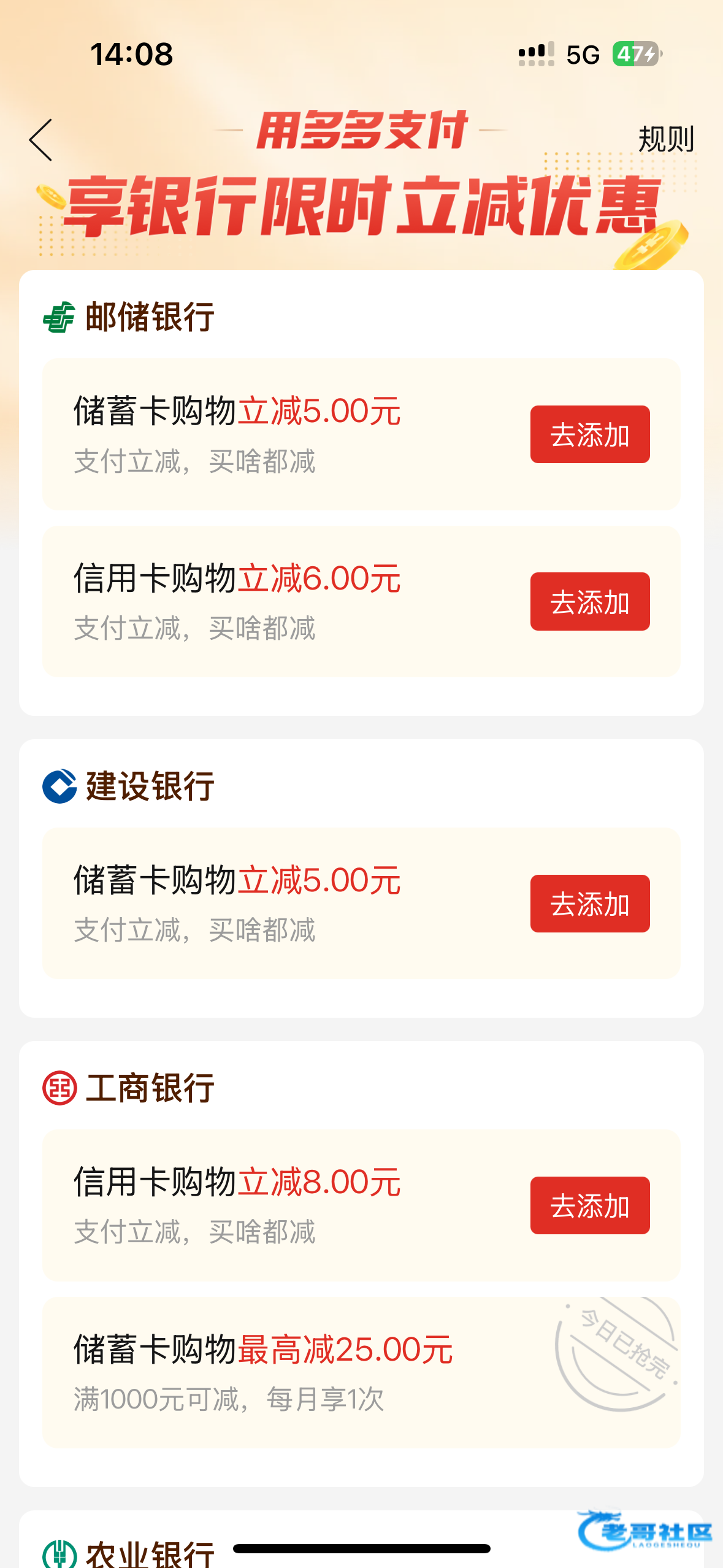 也是挂了,整点辣椒酱拌饭撑撑吧,在多多钱包里面绑定银行卡有优惠券,可以换号撸一张卡可以撸一次