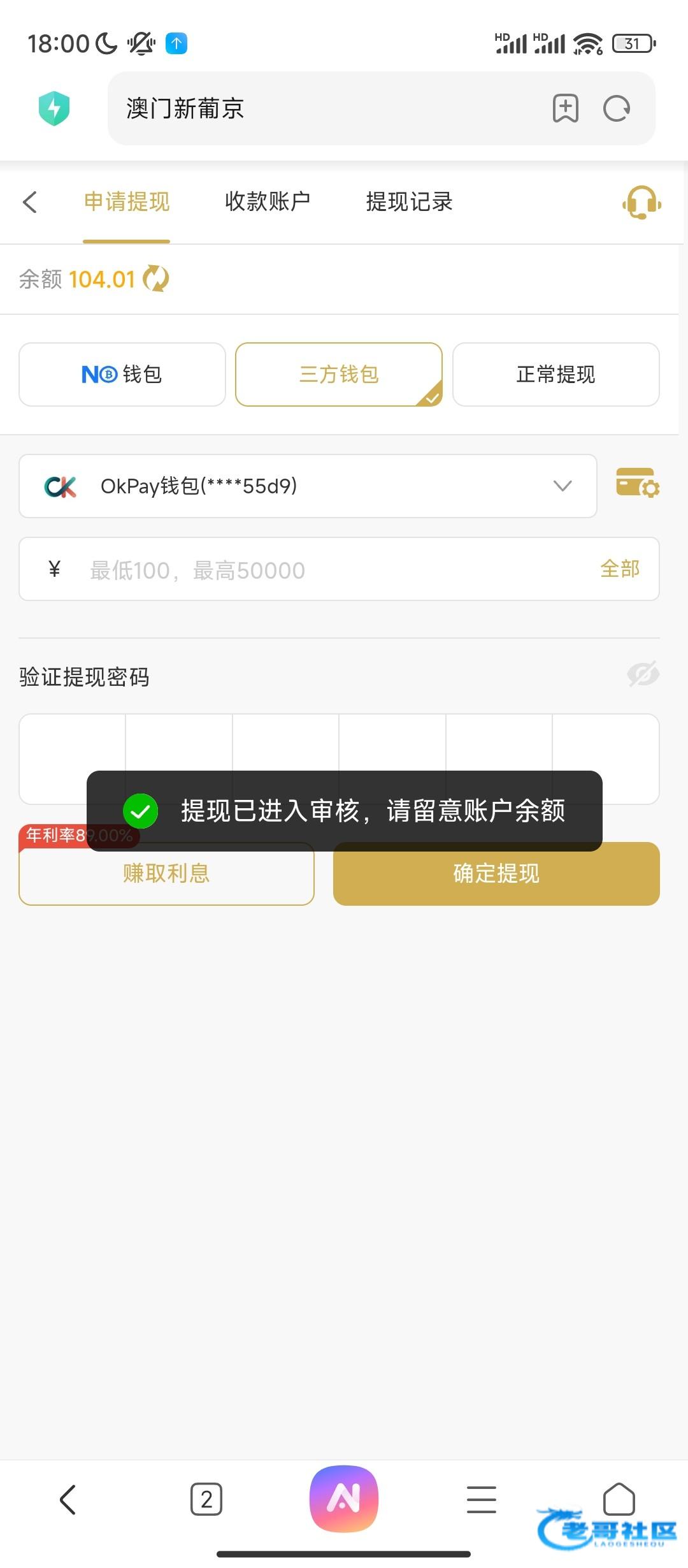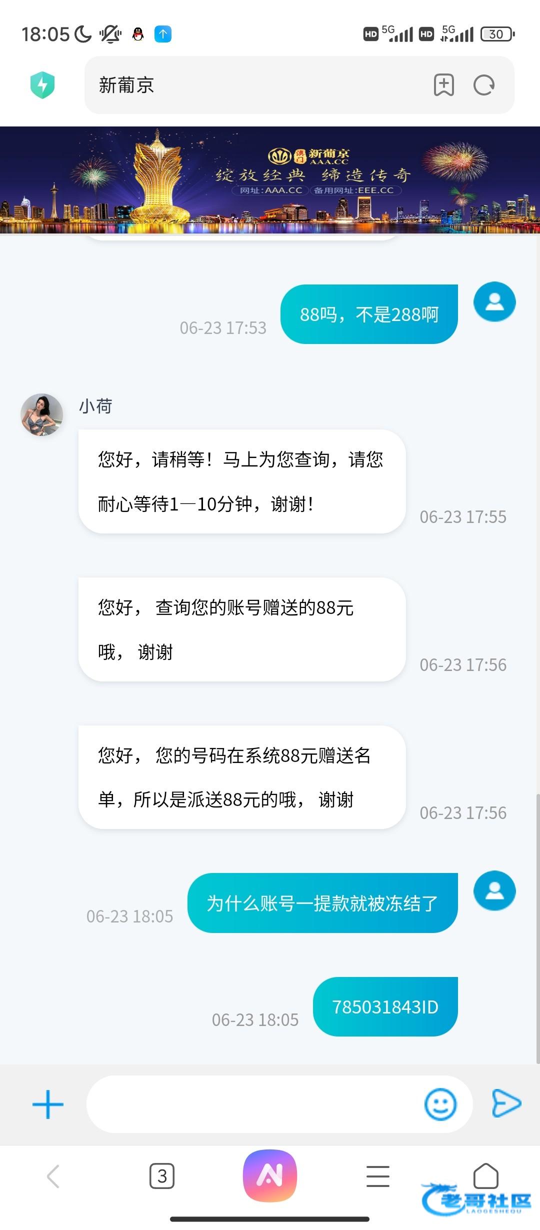 接到电话,申请回访!说五分钟刷新彩金288提款,立马账号异常说我多ip!送不起别打电话