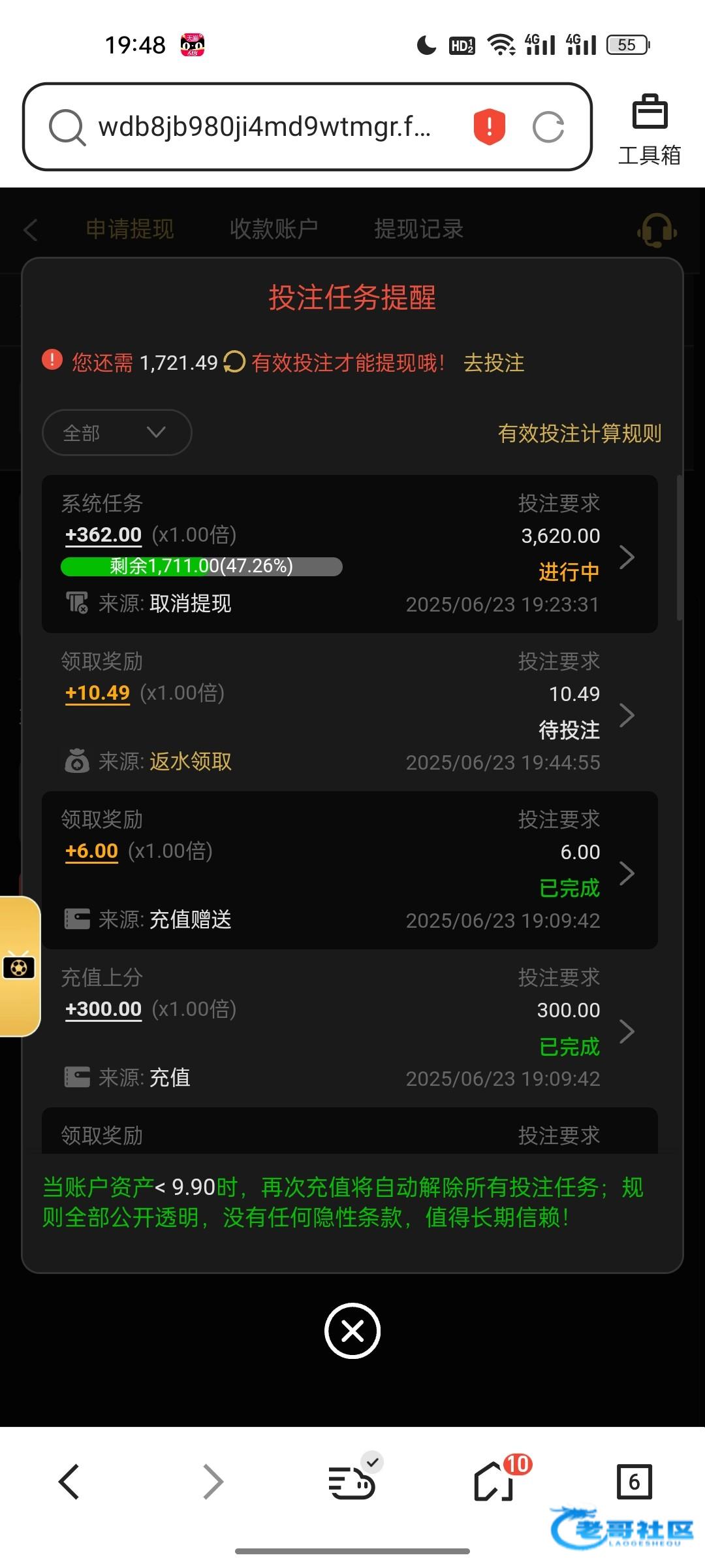 网站3800.vip,今天看到有个人发帖28回访上800多都出款了,心动了,前两笔小额也都出款了,觉得挺稳的,最后一笔300↑1000直接罚了10倍流水,说我套利,首充彩金我都没领我套什么利