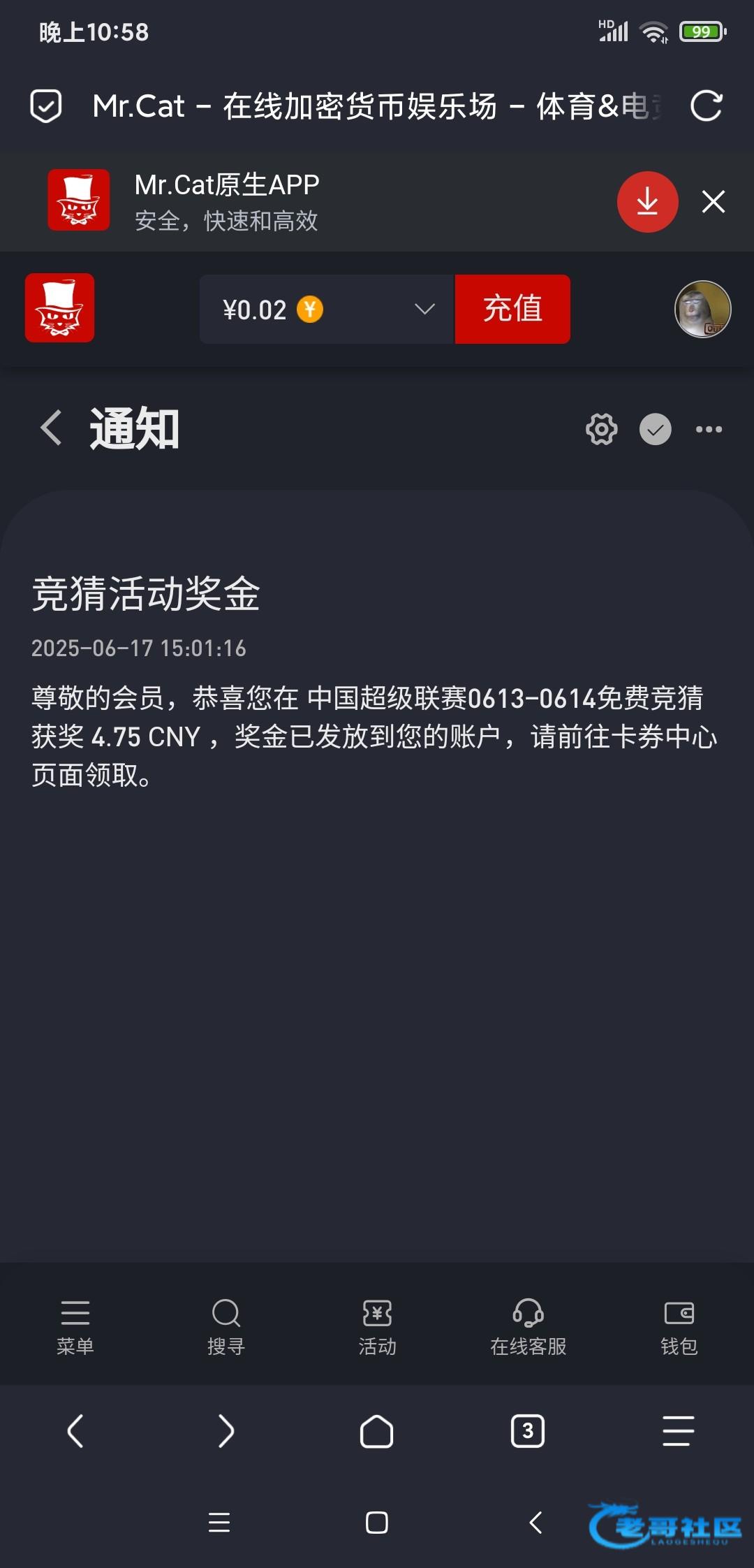 完成中级认证即可参与,赢的填1,平局不用管不算平局,反正选一边填1就行。比赛结束后第二天下午三点结算,差不多是周二,一倍流水出款,记得把默认货币改成cny人民币,这样发的就是人民币了https://www.myx06.com/zh-cn