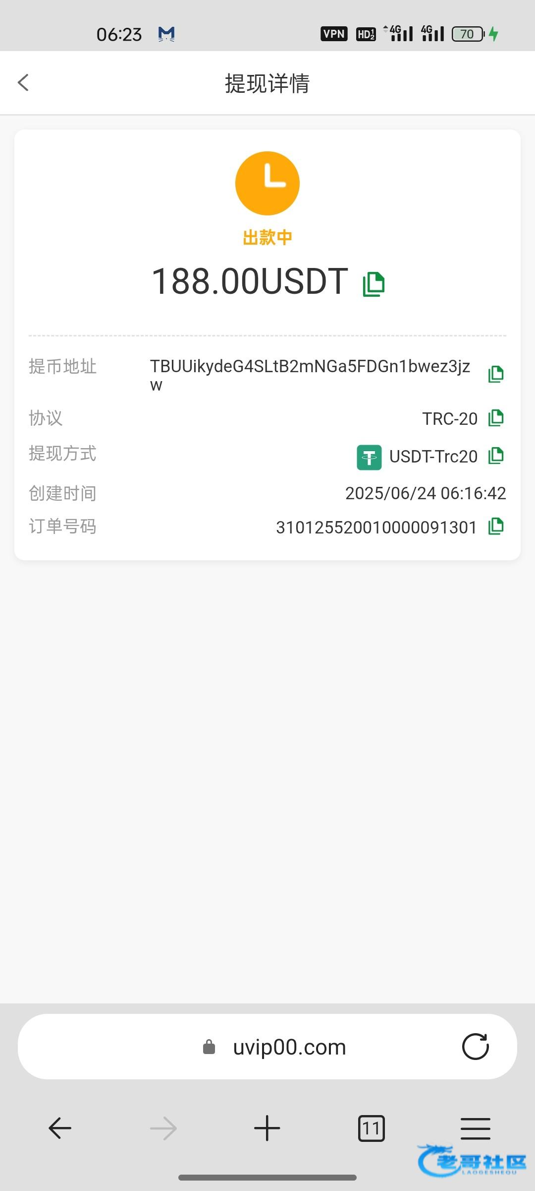 我领到了18U打到了188正在出款中,不知道能不能到网址U.VIP