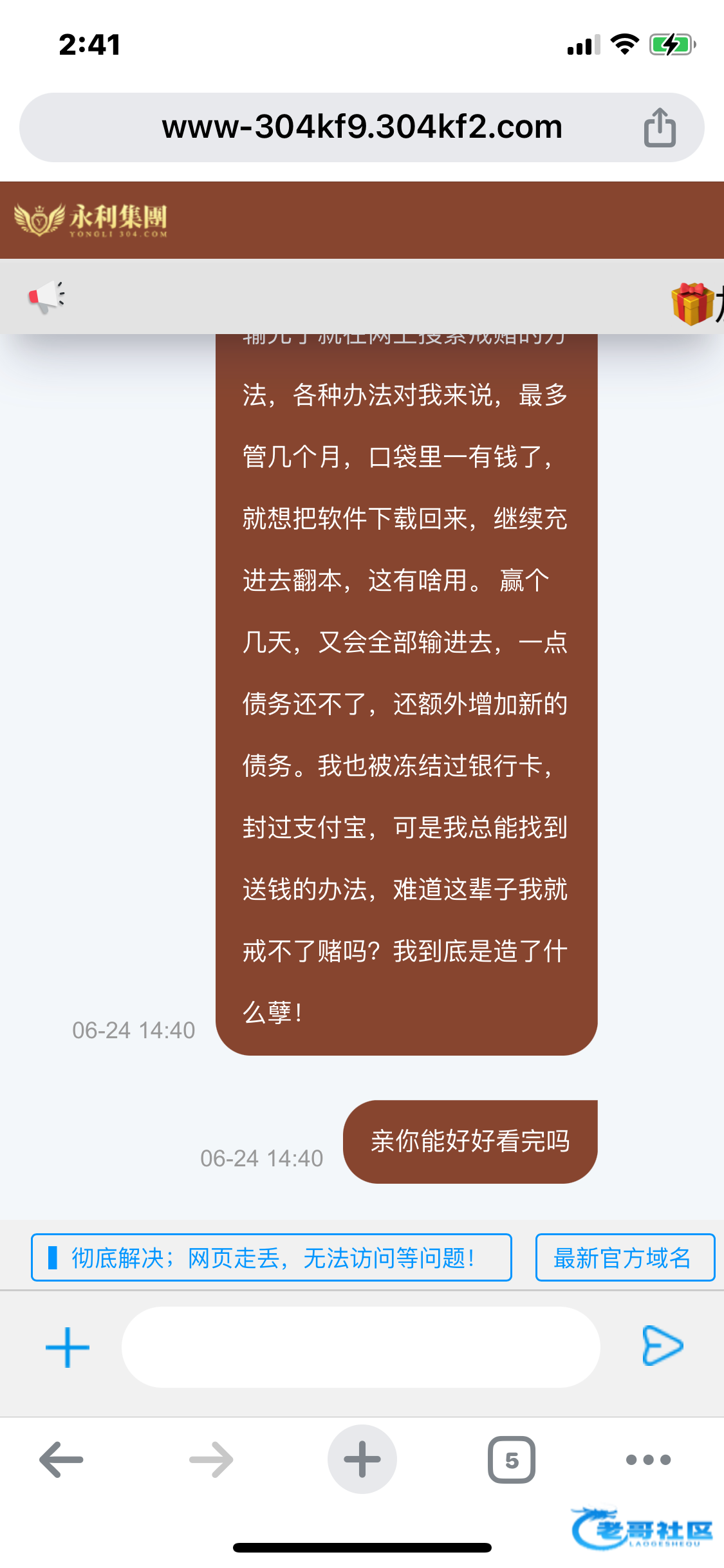 当天晚上,我是一晚上睡不着。第二天开始各种借网贷,差不多借了8万元,我分两次充进去,我想一把梭哈进去,后面手太抖了,就4万、4万的下,不出意外这两把一把都没中。开奖等待的时间,我是手都在发抖,用手蒙着余额,一点的松开,狗庄真是杀人不眨眼。
