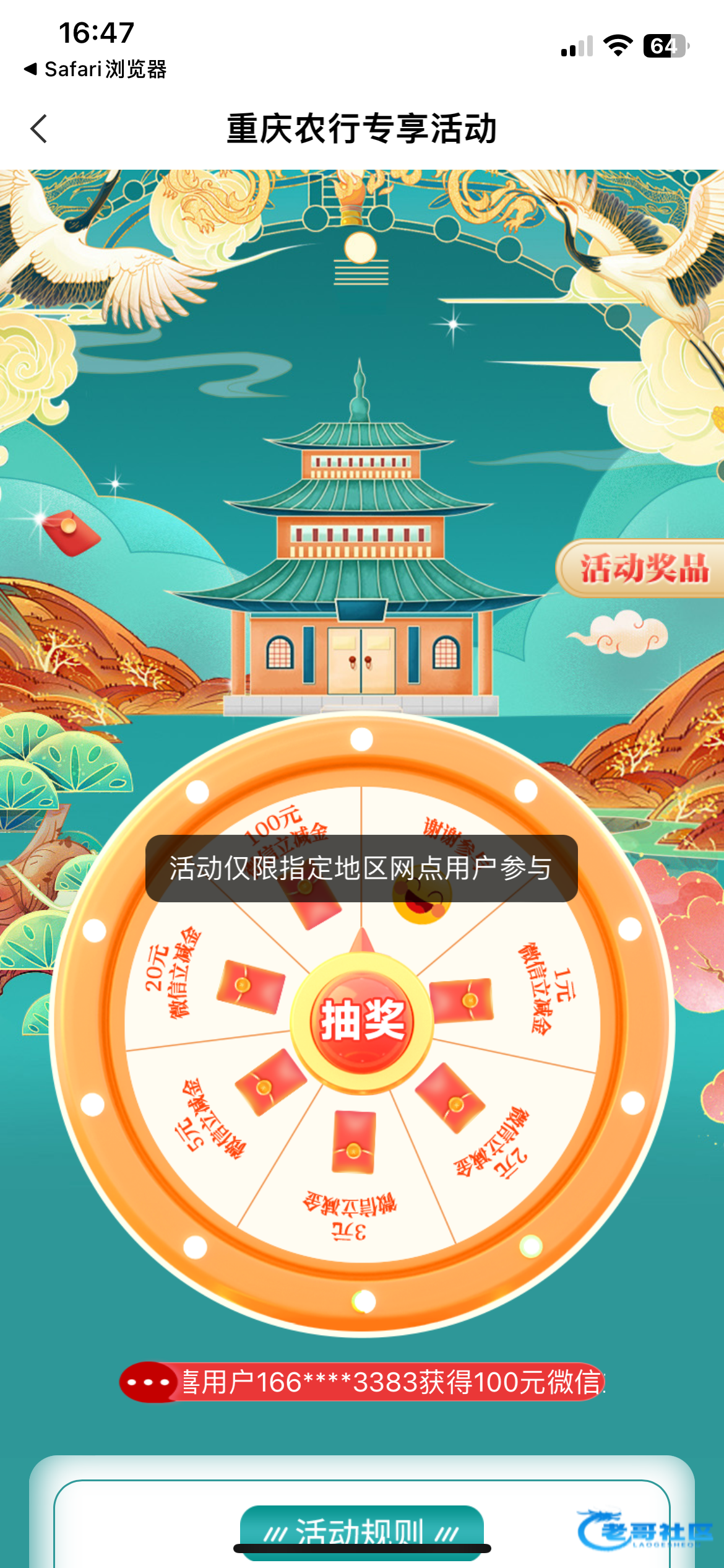 本来抱着试试的心态想着一块钱应该,结果中了20兄弟们速去试试。