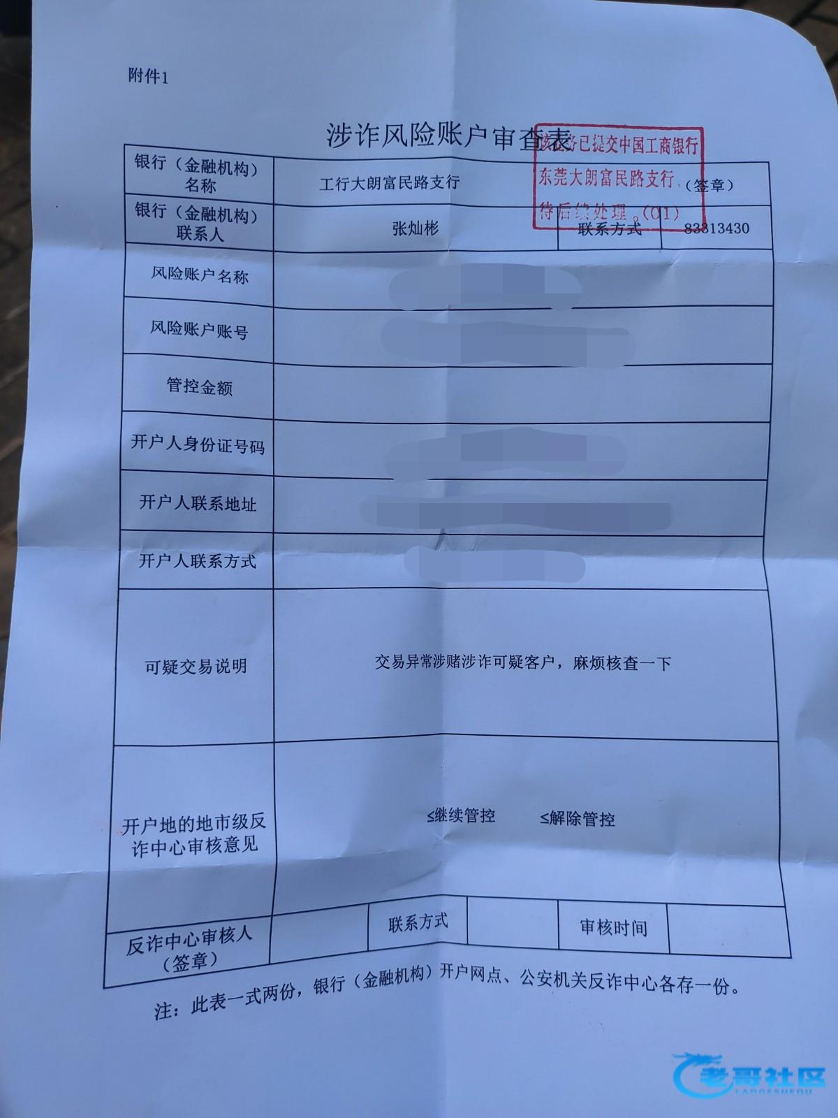 银行柜台给我开了这个单给我,说是要给公安局那边核查,这种情况会不会被摁啊,求助老哥们
