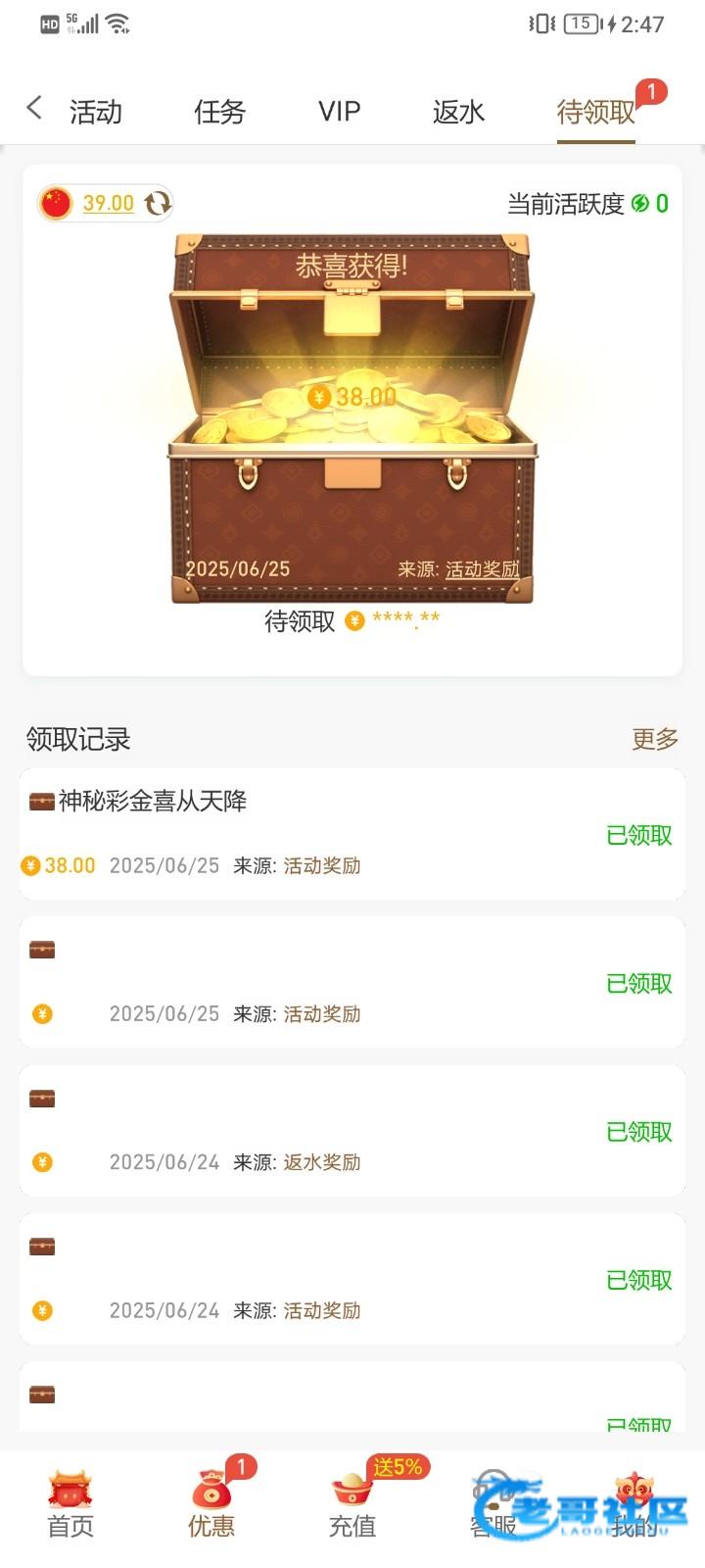 用你这个方法还真有,牛逼,领到了38