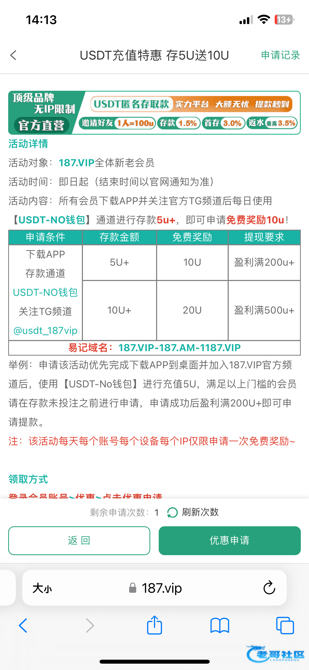 每天以小博大,5u送10u 10u送20u网址187.vip,申请联系飞机客服秒通过,不规定充值提现地址一样