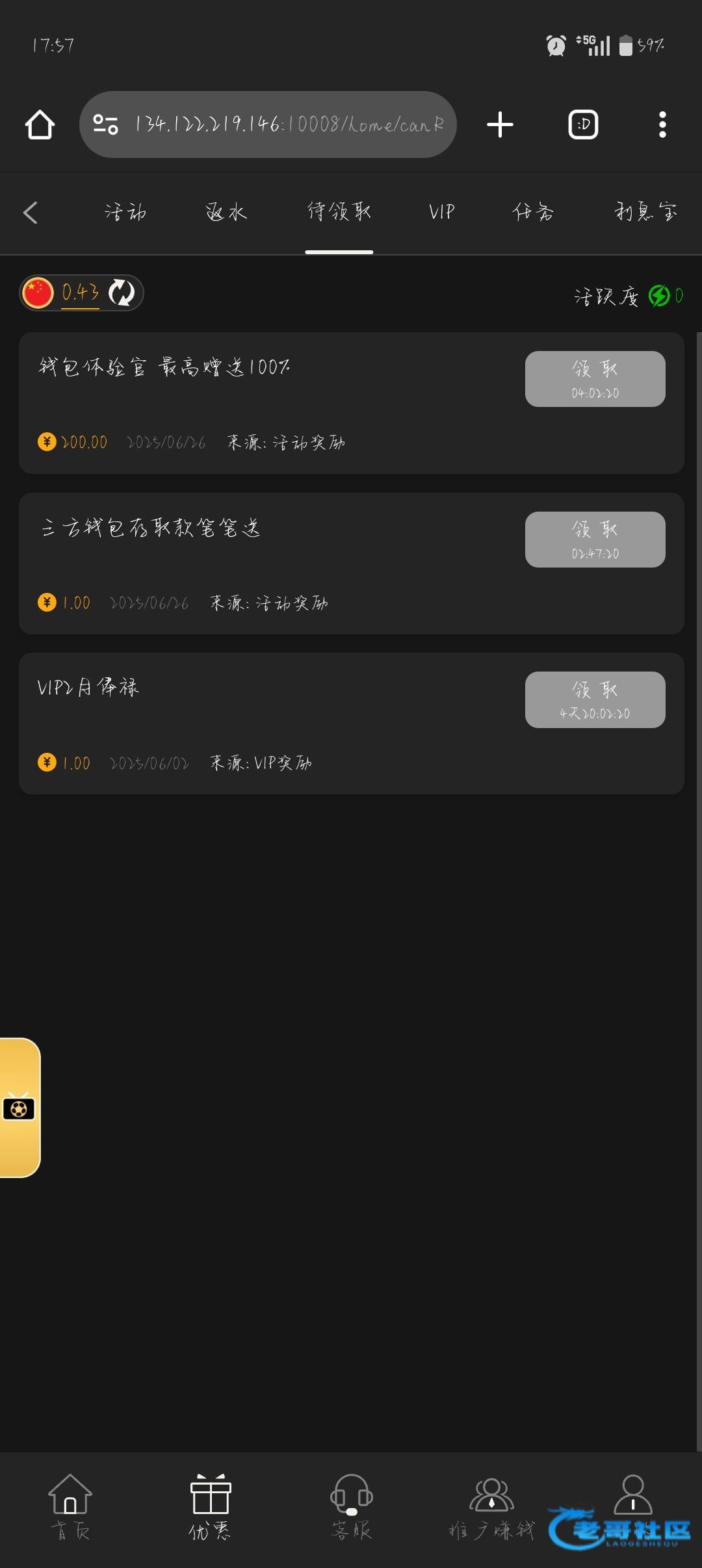 昨天上去领了18钱包回馈彩金出了两百刚刚登上去显示有 玩过的去看 959.com