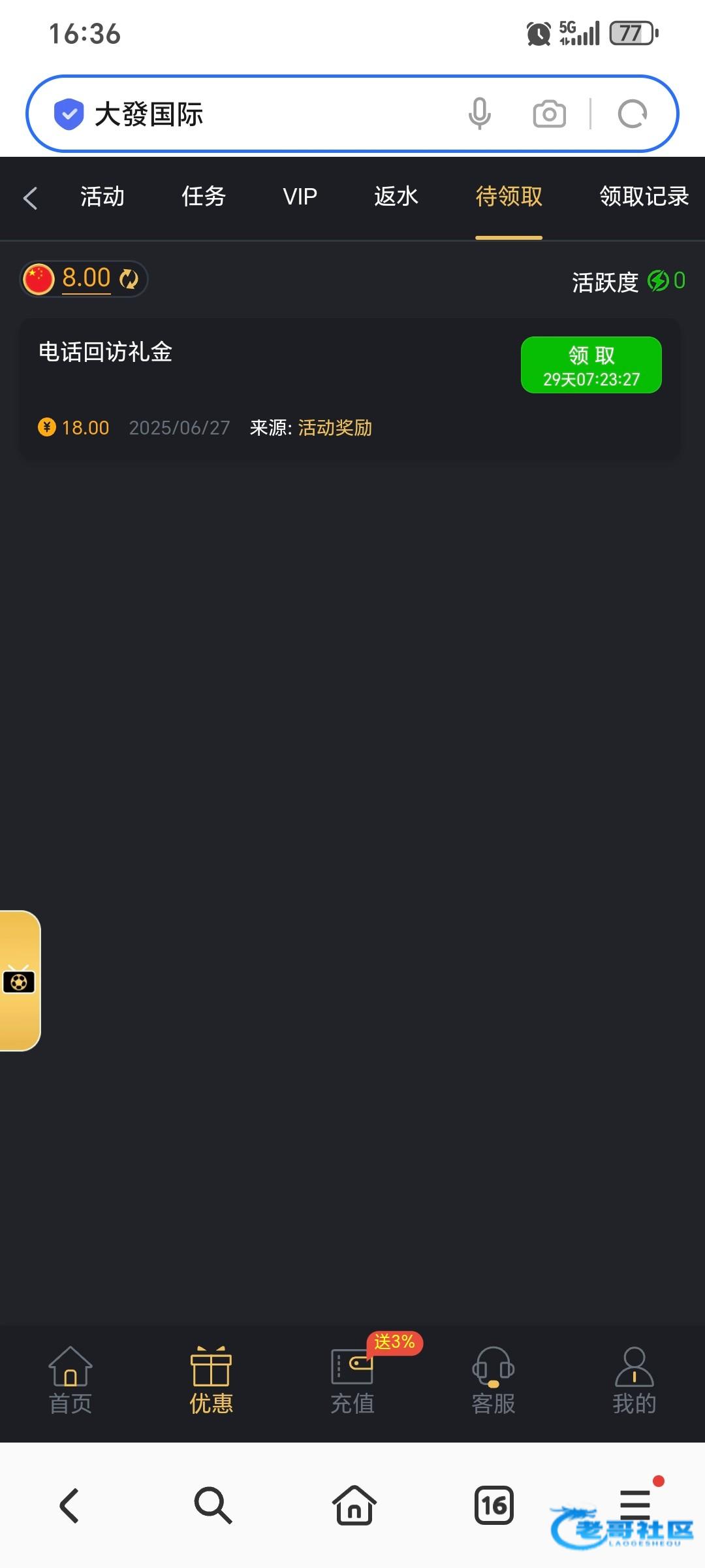 上号就有8块钱,不知道哪里来的,然后找客服送了18,网站8588.com