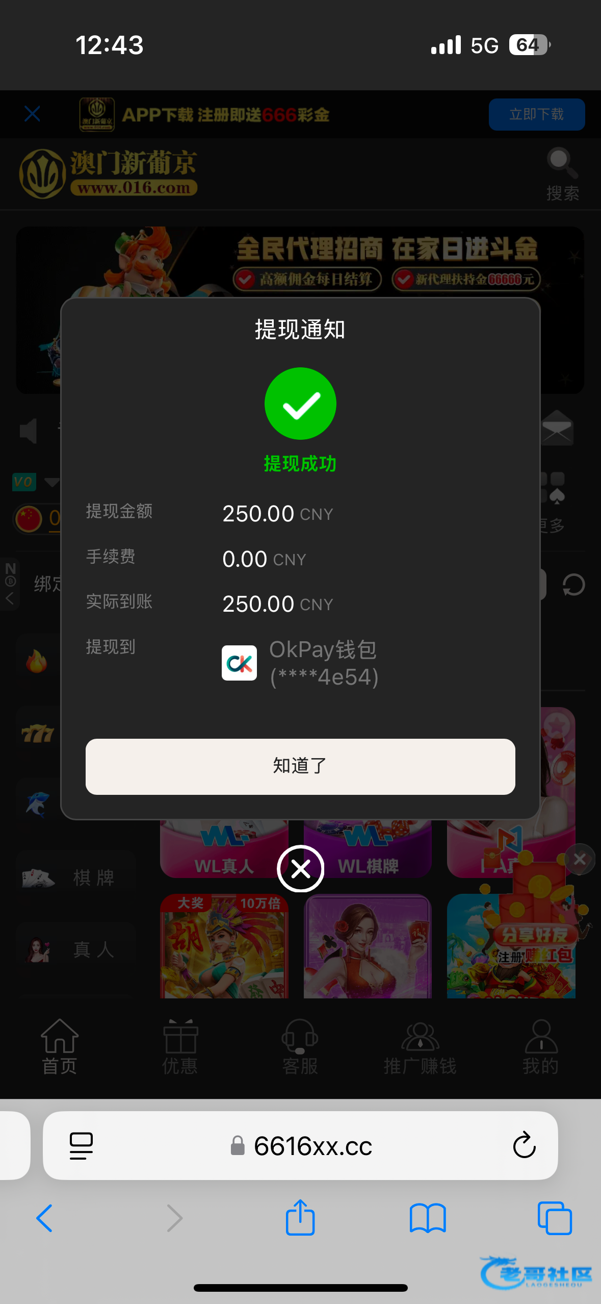 提过或者充过的老哥,还能去参加一下电子钱包首次存取彩金,领了16+6