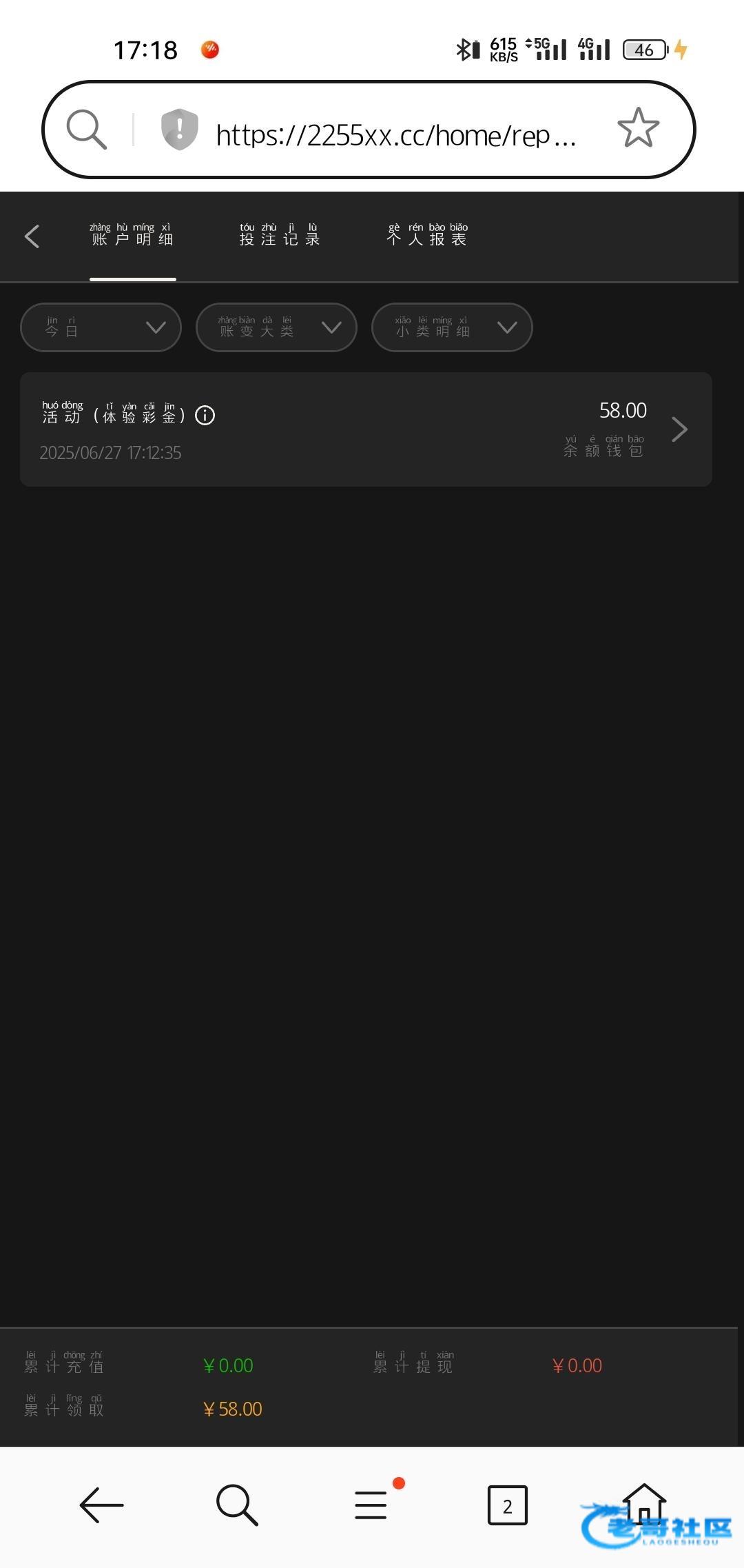 注册两天放着没动,然后刚才打电话来送了58。提了230,感谢