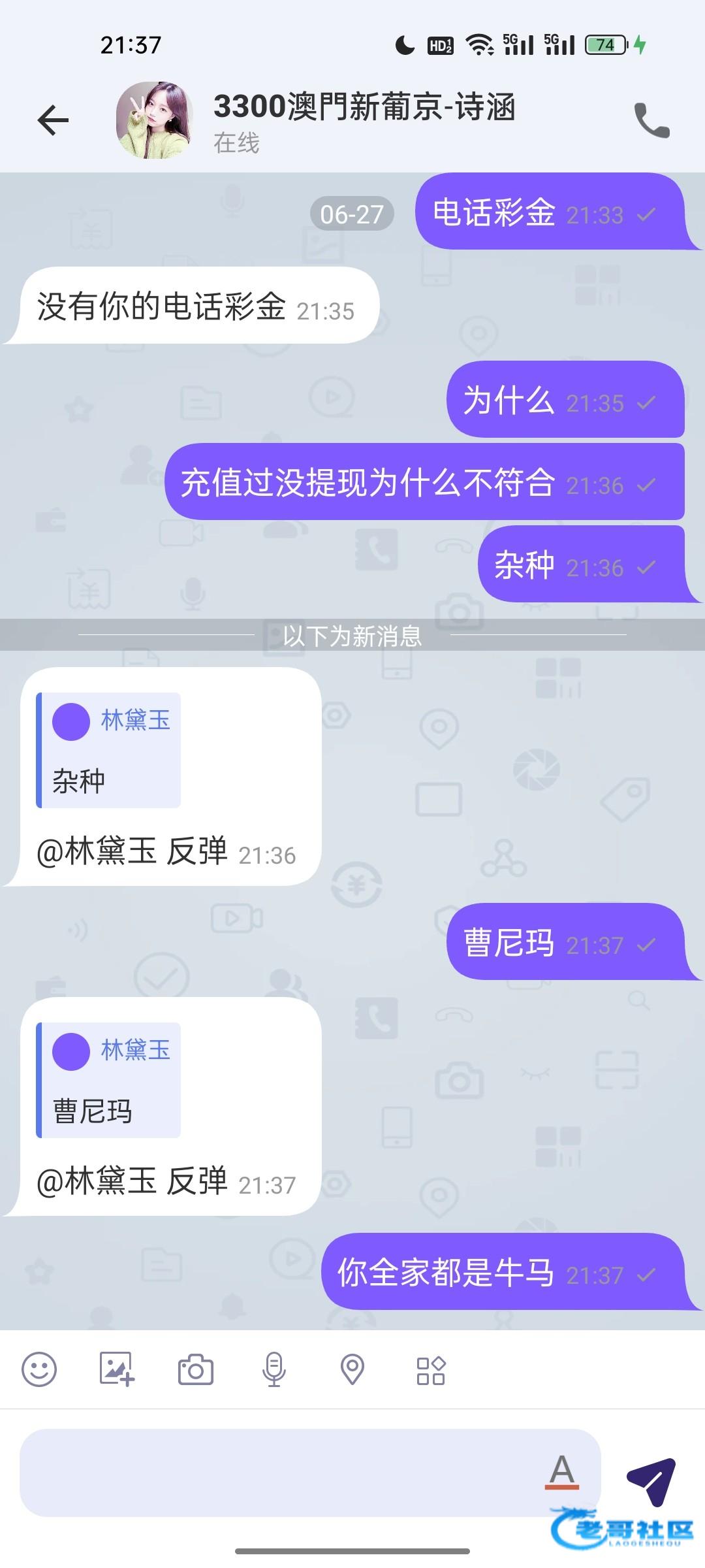 傻逼线聊送了18全部要充值,输完裸充10块提50都不给提,让充100激活账号,避雷这个线聊的所有台子