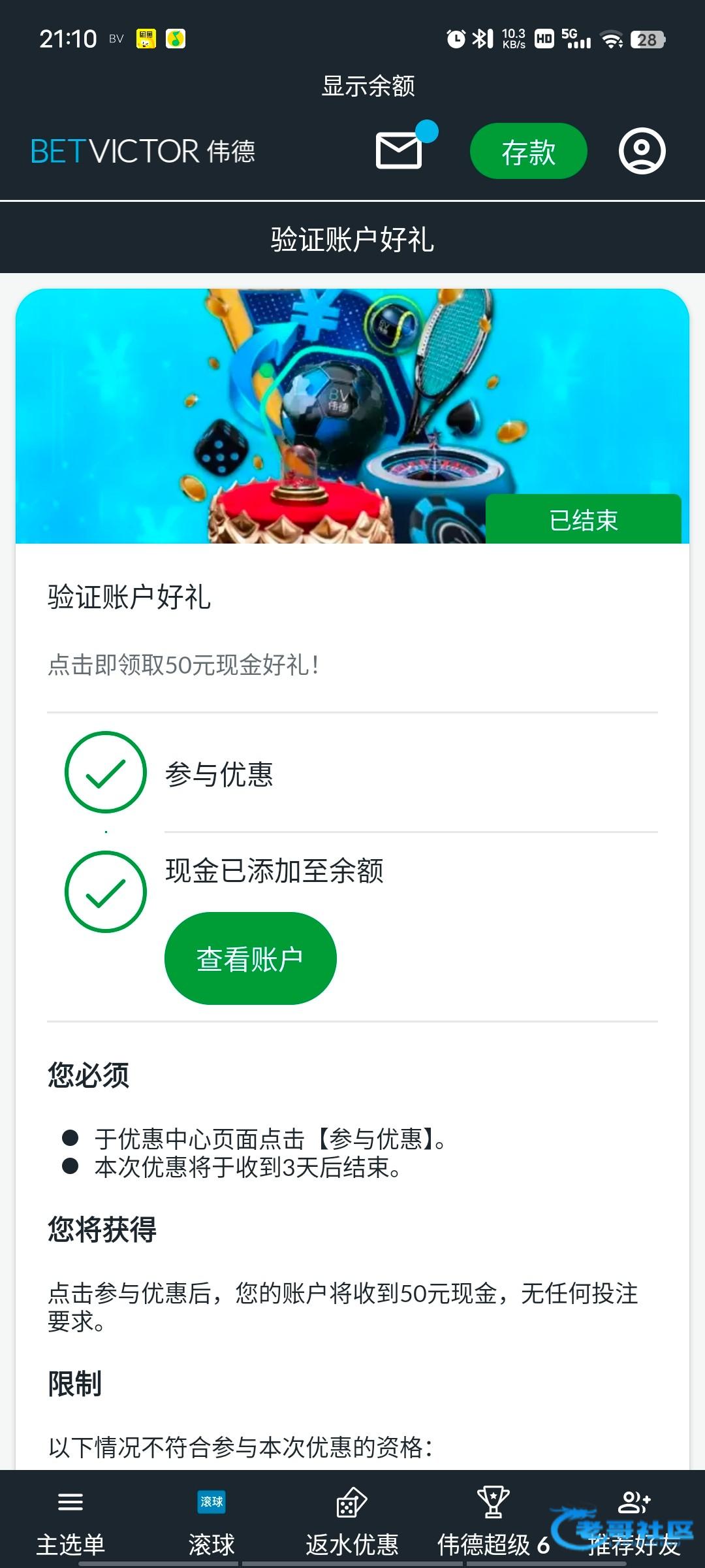 痛苦绝望 ▶ 发誓要赢一百万 你先账号验证吧 提款需要充值的 之前必赢抽中888 打上一千二 反正是黑了 账号验证说我个人信息不符合 用我的邮箱我的身份证 这样的说辞第一次遇到 还说 套利刷优惠 7月前