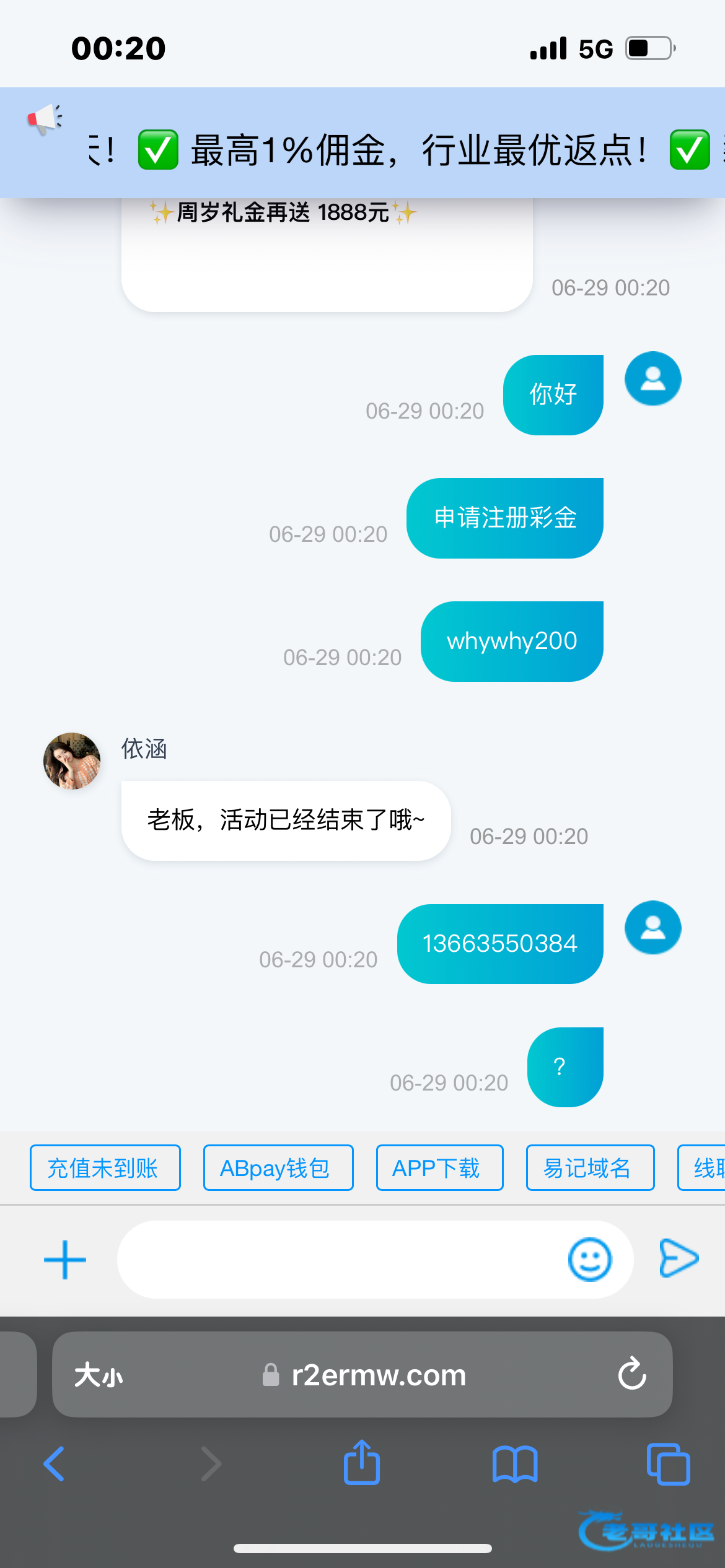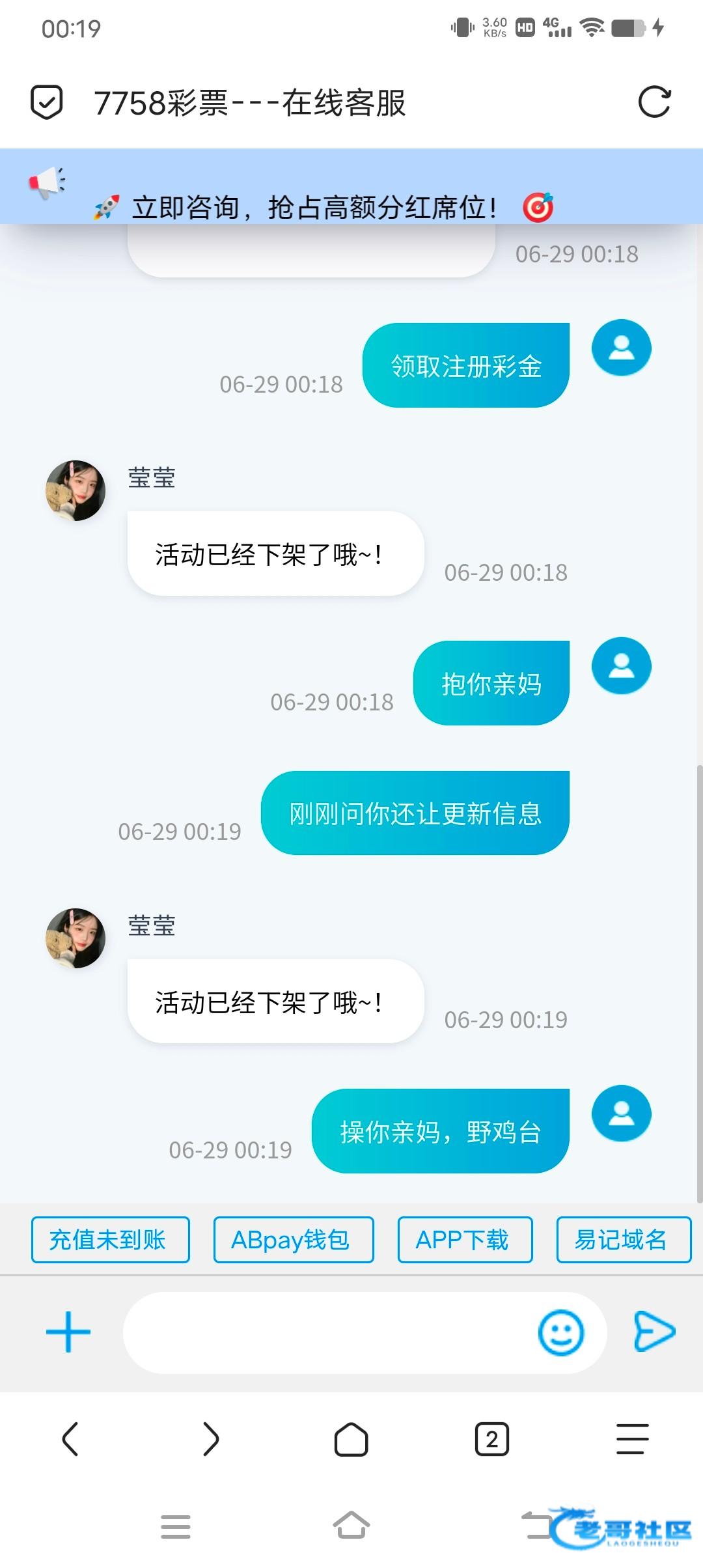 老板,关于下载APP彩金,需要绑定手机号,注册AB钱包二级认证充值一笔即可领取的,建议您先参与首存100+,领取最高彩金8888元!谢谢06-29 00:16充值未到账 ABpay钱包 APP