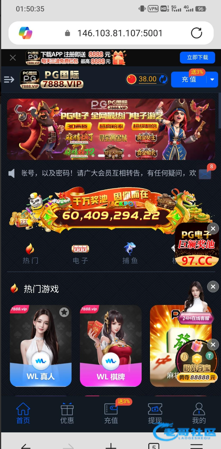 有两个平台你不用注册只要进网站就有账号并且有余额,这种就是冒充狗庄诈骗彩金的套路。