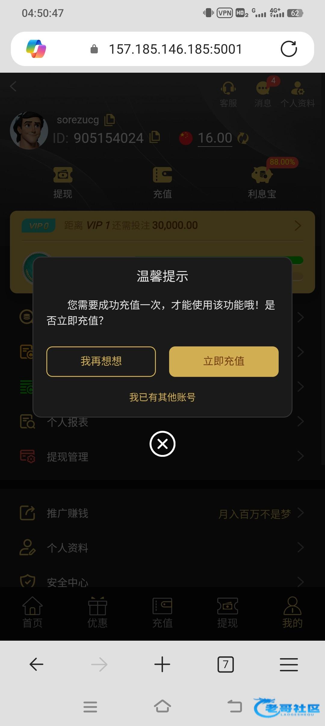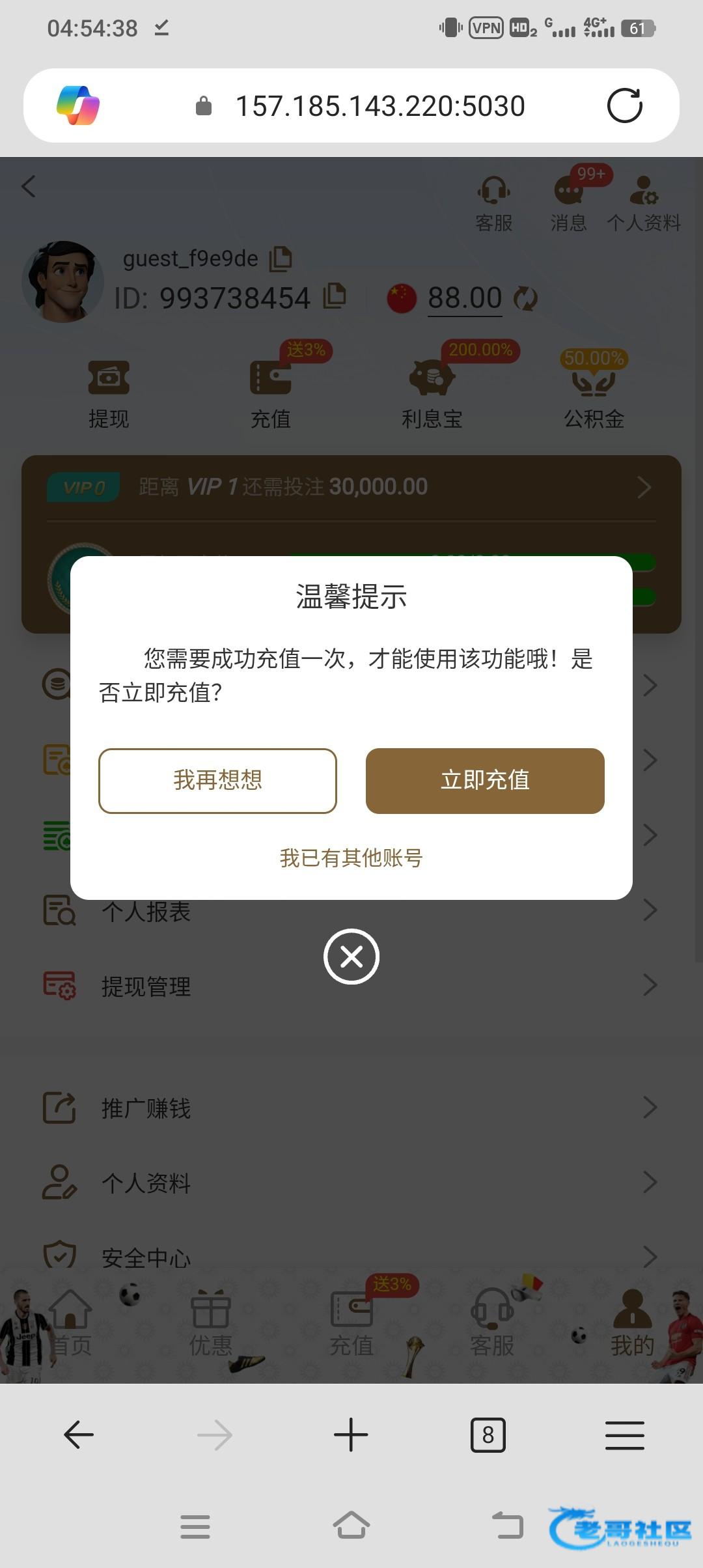 而一旦有人看到有余额就会带着贪念去充值。充值完会发现之前看到的88没有了。只剩你刚刚充值的额度了。所以老哥们不要充值!!!