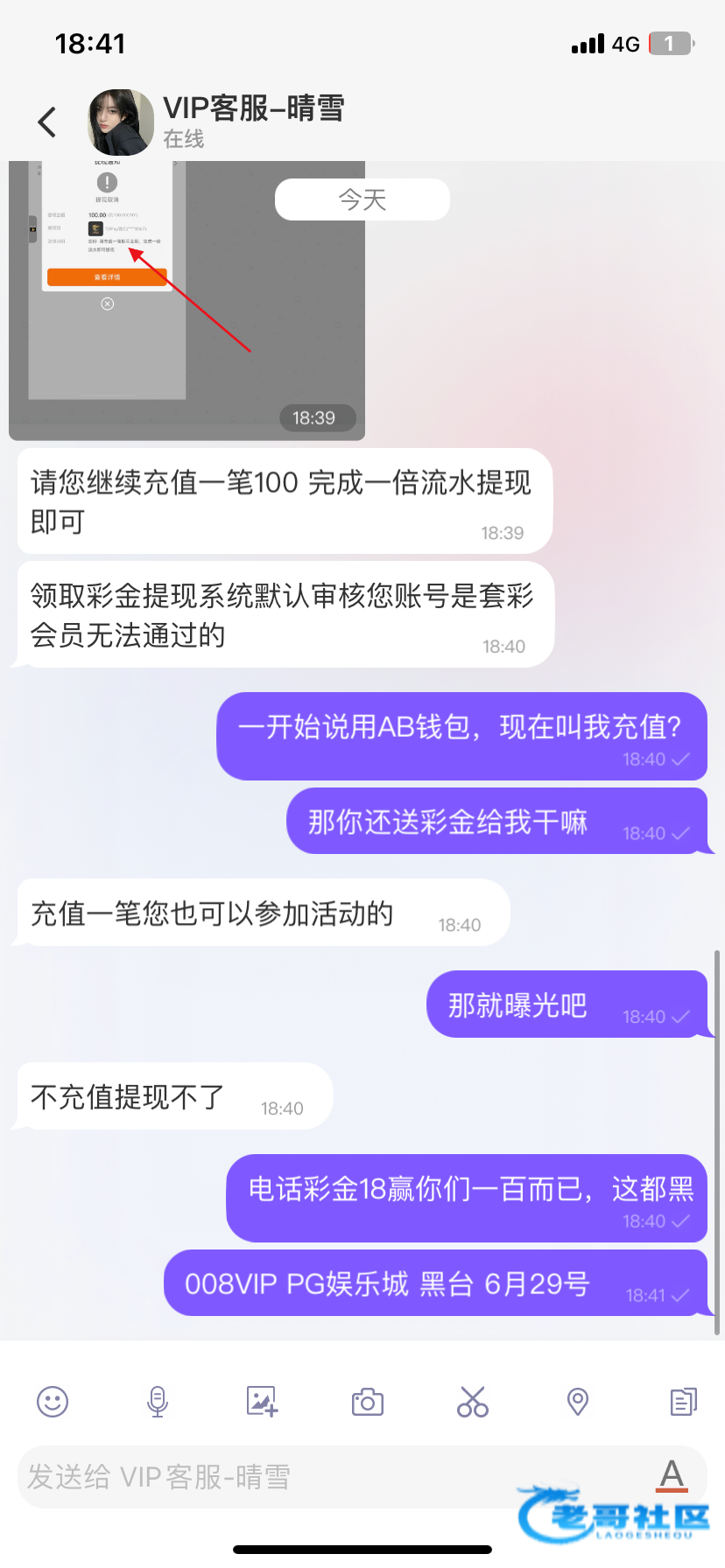 一开始打电话送18彩金然后我赢到100提现一开始提银行卡然后叫我用虚拟币提现后面我用AB钱包提现让我充值一百 客服也是牛逼得狠