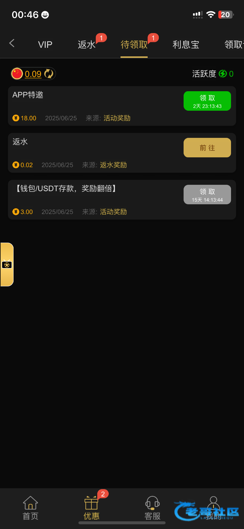 要充值才有彩金!没充值的别去了!发帖要说清楚彩金来源