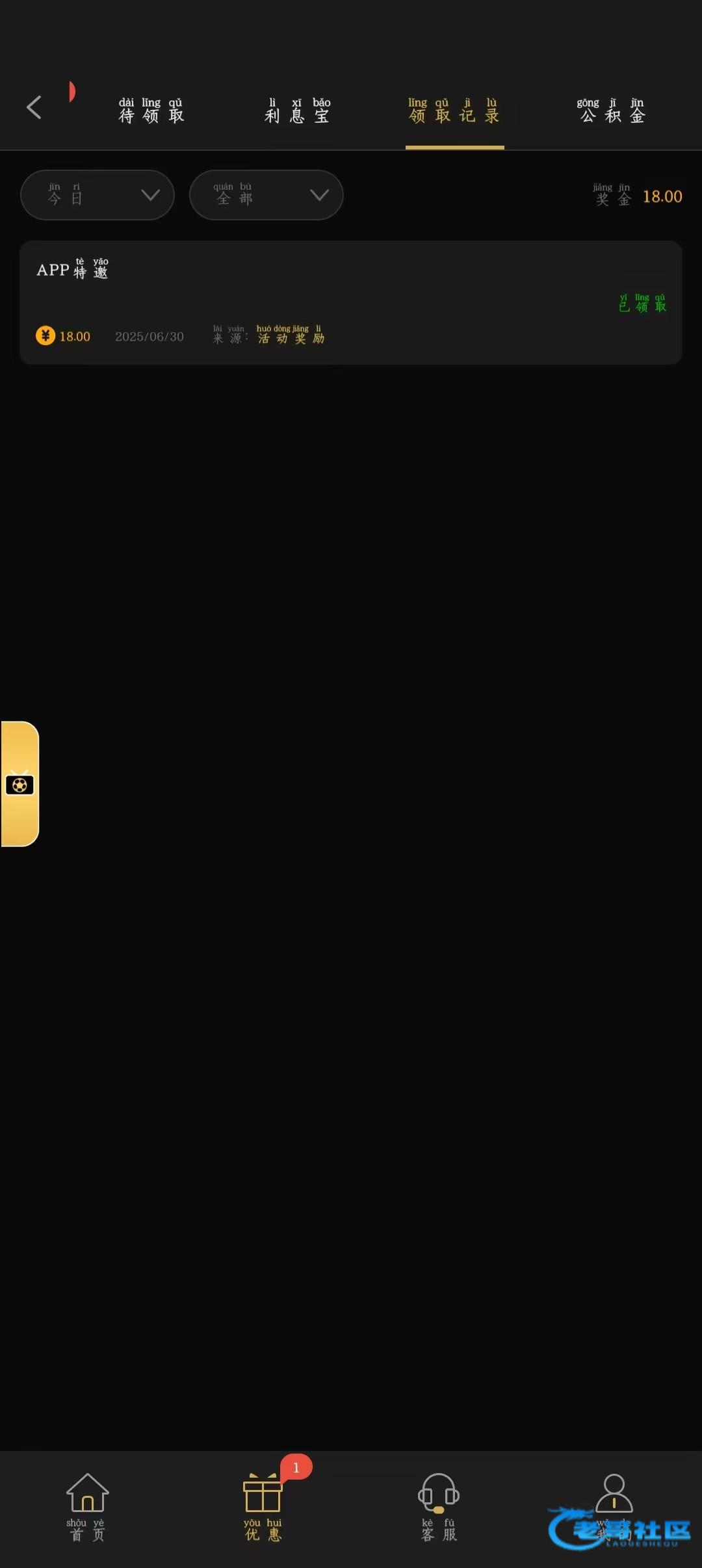 登入看领取中心有没有,没有就是没有。