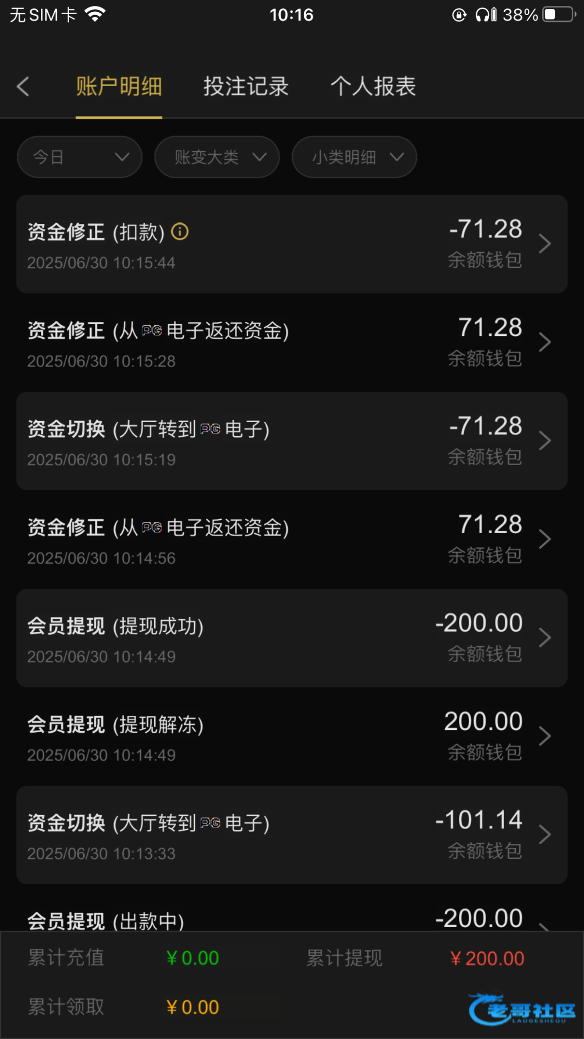 这个刚出了200,剩余余额要充同等金额一杯才可以出,剩余还有180