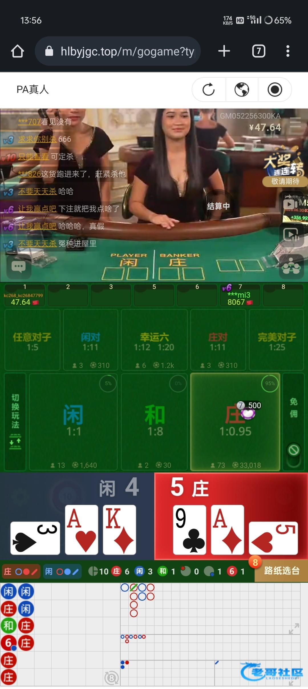 一开始是把牌放歪了一张,然后正过来了,随后就过来一个人手里不知道拿的是平板还是什么玩意,然后在那站着好像是在说话,过了几十秒开奖了,闲8点,庄0点,估计是有大哥下大注被杀了,然后又开了两局,换人了,这种会不会要被电了,换人的时候还笑呢