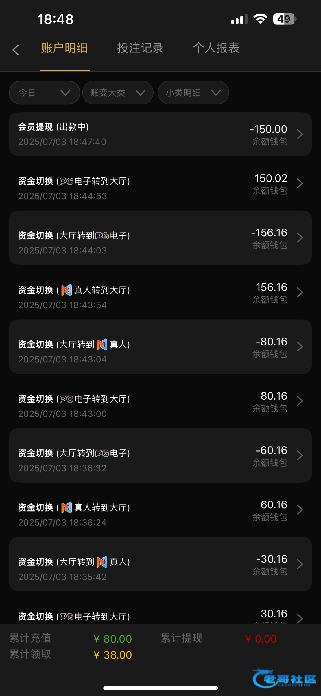 垃圾麻将1 一把胡没有进 输完38不服气又冲了80 梭哈百家乐 赢几十块跑了