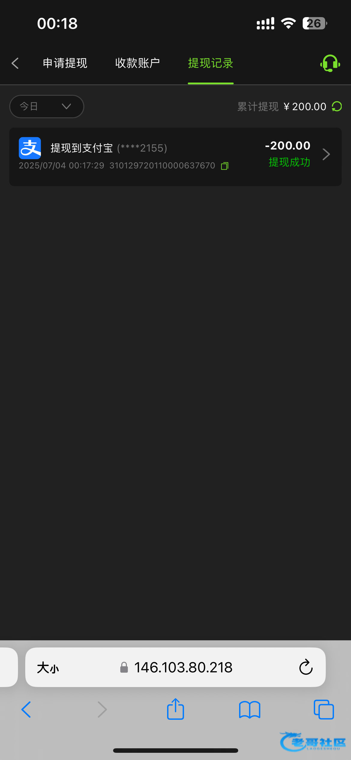 前几天18打出了150,秒到账