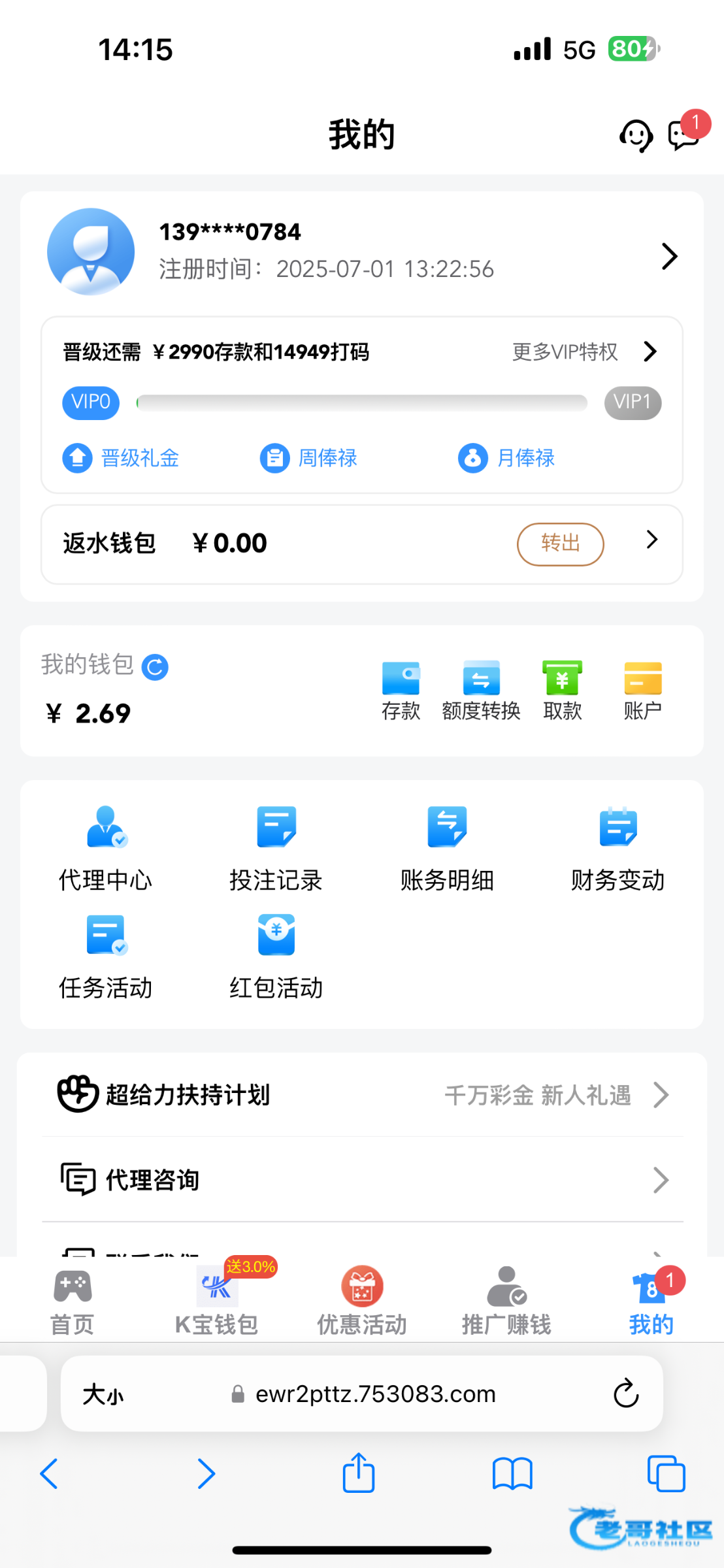 注册账号有1年多了,就充值过一次100元,今天接到专员电话,问一下注册这么久了,怎么没有上线玩,回复忘记网址了,其实也是实情,连投注返水都没有领取,专员送了38元回归彩金,只能玩pg电子.需5倍流水 链接7530.com